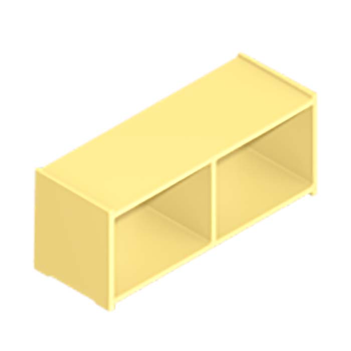 Geel wandkastje met 2 vakken – Smalle kast met twee open planken.