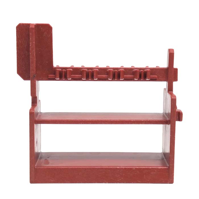 Een authentiek bruin wapenenrek uit de middeleeuwse Playmobil-serie. Dit stevige rek werd gebruikt in kastelen, bij toernooien en in de werkplaats van de wapensmid. Met 2 stevige legplanken en 8 klemmen bovenaan om zwaarden, speren of schilden in op te hangen.