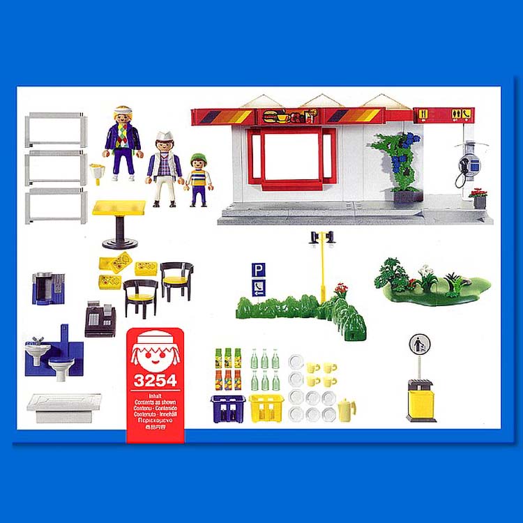 De familie gaat met de playmobil camper op weg naar hun vakantiebestemming. Tijdens de lange reis stoppen ze bij dit Playmobil wegrestaurant. Dit wegrestaurant is een eetgelegenheid die direct aan de autosnelweg is gelegen. Hier kunnen de hongerige reizigers, andere automobilisten en truckers een hapje eten. Deze set van Playmobil bevat o.a. het wegrestaurant met balie, toilet, kassa en koffieapparaat, 2 landschapselementen, 3 Playmobil speelfiguren en nog veel meer leuke accessoires.