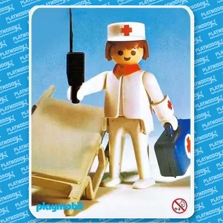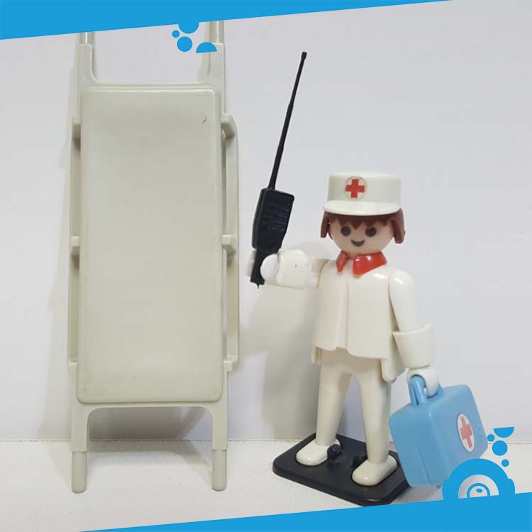 Deze set bevat 1 Playmobil speelfiguur, brancard, portofoon en verbandkoffer.