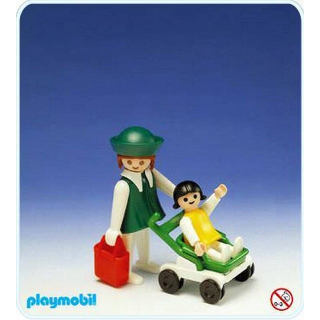 Playmobil 3597 moeder met kindje in kinderwagen. Inclusief roodtasje en groene hoed. Mama heeft draaibare handen, in het originele setje niet!