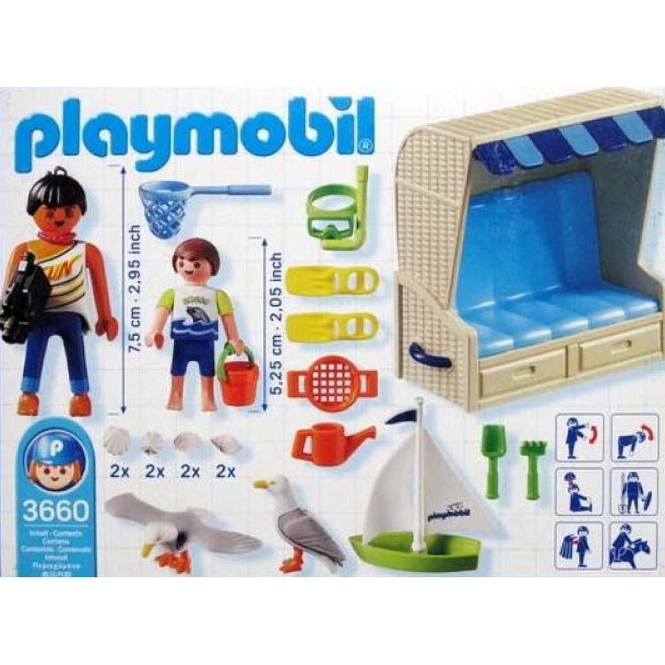 Bouw je eigen zandkasteel met deze leuke Playmobil strandset! Of ga je liever snorkelen? Inclusief speelgoed zeilbootje, strandstoel, camera, zeemeeuw, schelpen en 2 Playmobil speelfiguren.