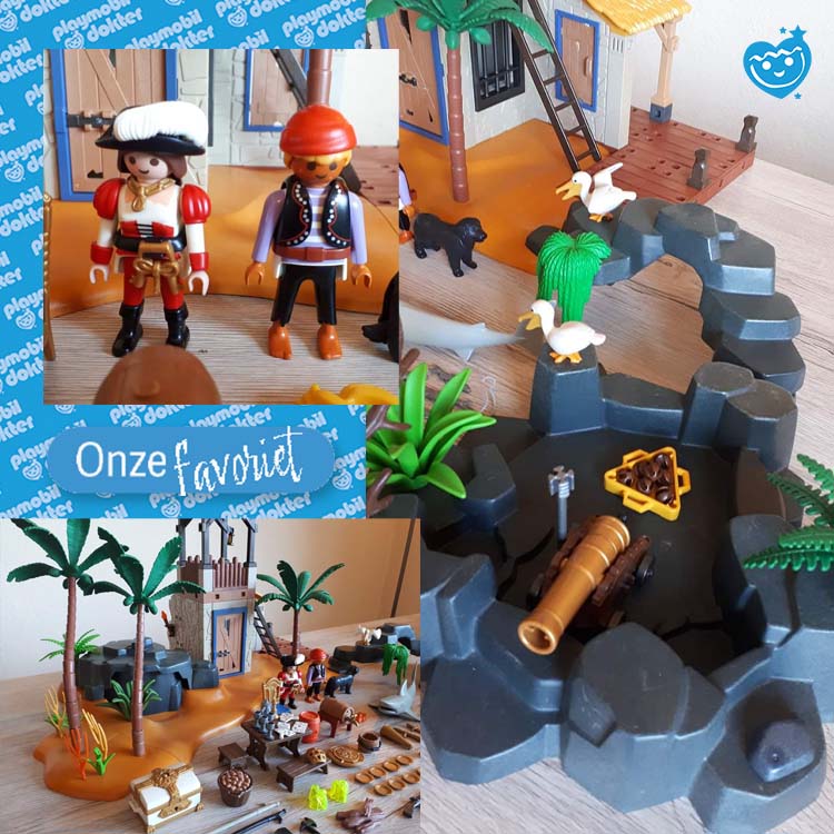 Het pirateneiland met uitkijkpost en palmbomen is 67cm breed en beschikt over een geheime ondergrondse doorgang in de rotsen. De set bevat o.a. 3 piraten, een echt schietend kanon, de schatkist met gouden munten en edelstenen, een roeiboot, piratenvlag en nog veel meer leuke accessoires, bekijk alvast de handleiding hier. Deze niet groot genoeg bekijk eens deze reus. De kleine versie de 4899 is natuurlijk net zo leuk, voor een zachtere prijs.