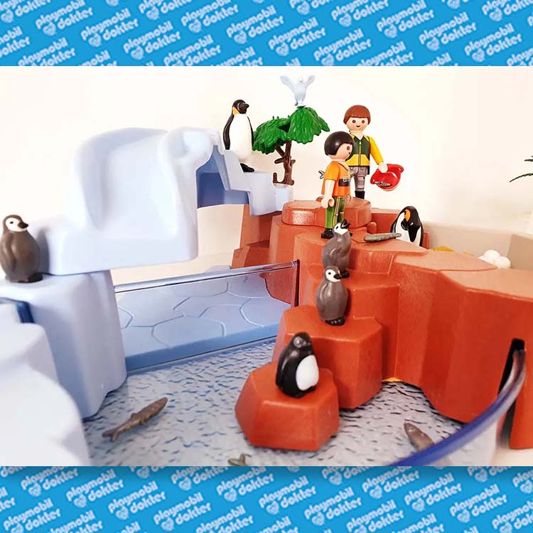 In de Playmobil dierentuin kunnen de pinguïns lekker spelen en glijden. In deze set op de foto’s zit een blauwe duif, deze is gevloven, er hoort officieel een meeuw in, maar ik heb gekozen om de pelikaan bij deze set te doen. De dierentuinverzorgster zorgt ervoor dat ze een lekker visje te eten krijgen, terwijl het kindje toekijkt. De meeuw probeert ook een visje te stelen! Kan echt gevuld worden met water. Met geheim plekje waar de pinguïns zich kunnen verstoppen. Dit is echt hier thuis tijdens het fotograferen al een succesnummer geweest, kan ik je zeker aanraden. Alleen de geluiden die de beestjes maken, daar verschillen we in mening 🙂