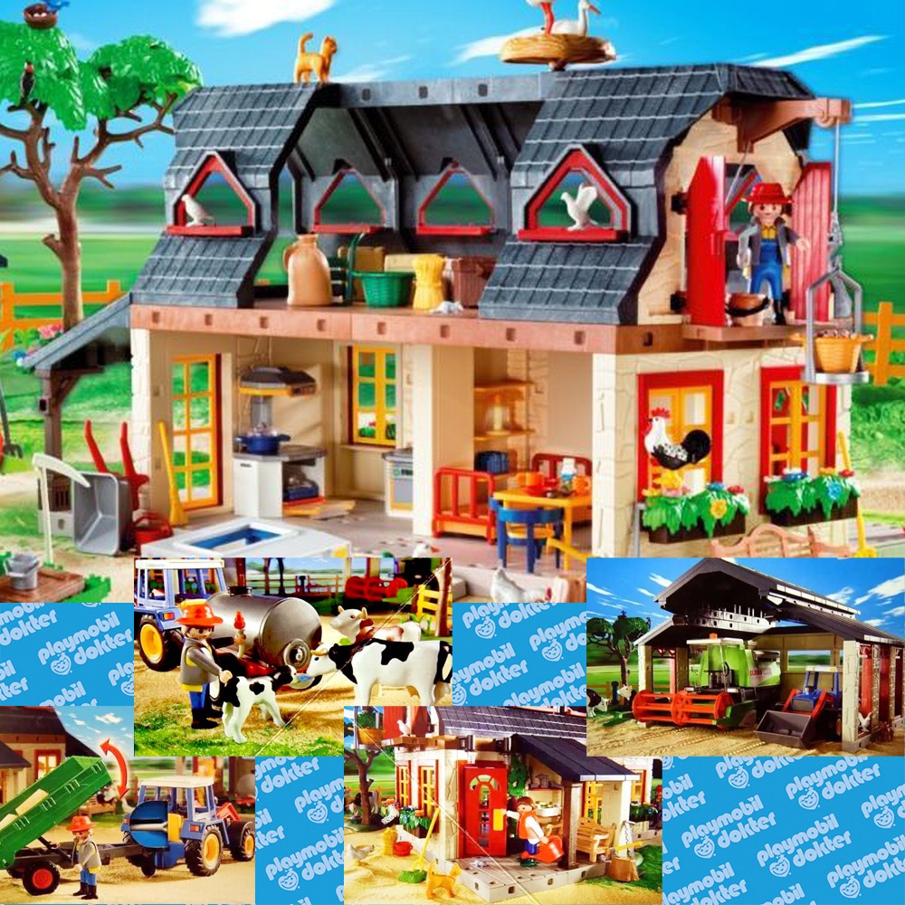 Van deze enorm grote exclusieve Playmobil boerderij set is de doos maar liefst 90 cm lang, dus moet je voorstellen hoe ontzettend veel er in deze set zit. Deze schitterende Playmobil 4055 set bevat werkelijk alles wat een boerderij nodig heeft. De set bevat o.a. een grote boerderij, een grote schuur, een tractor, een combine, zeer veel dieren en andere boerderij accessoires. De boerderij bevat een keuken en een slaapkamer. Bovendien is er een enorme zolder.