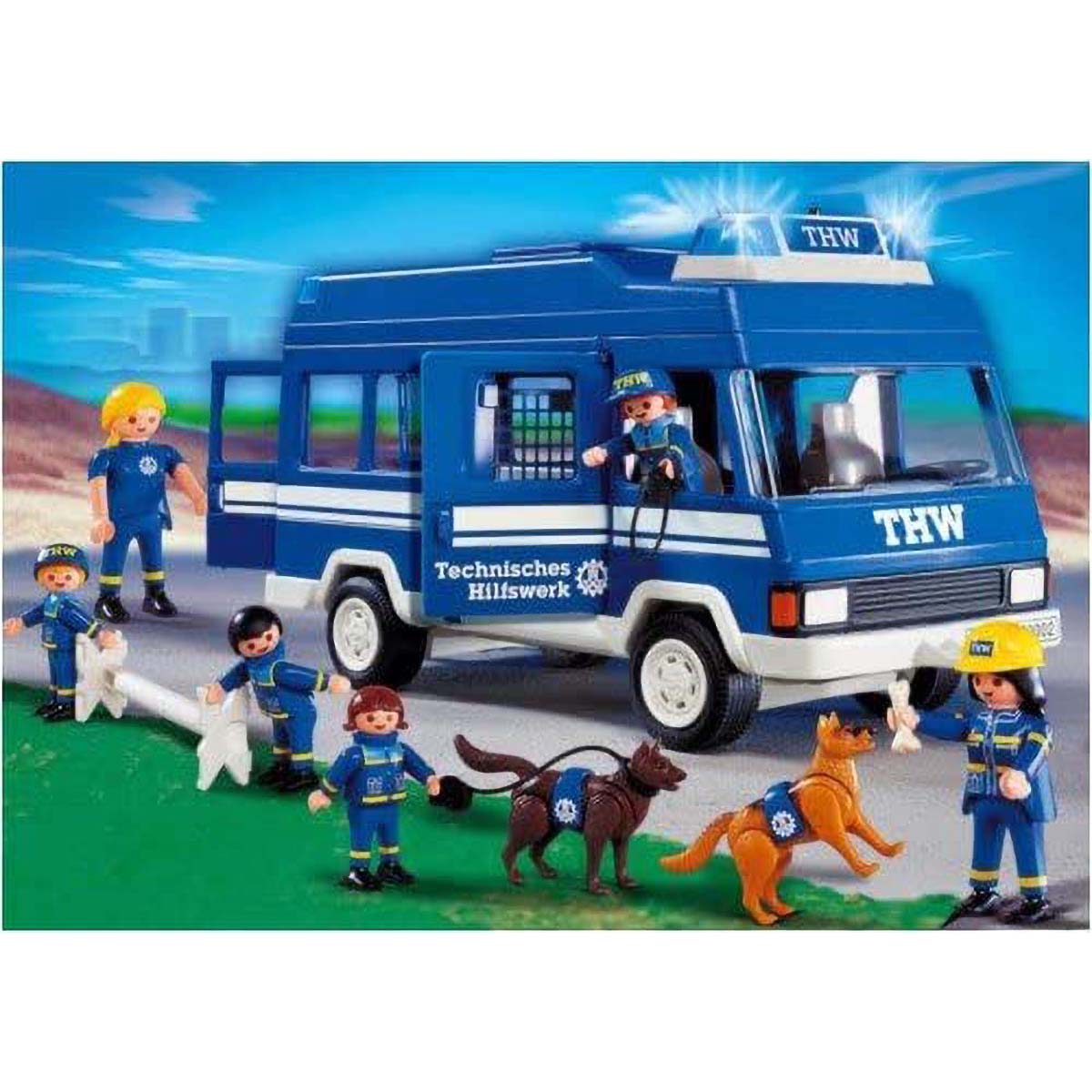 De Technisches Hilfswerk is een Duitse civiele burgerbescherming en hulporganisatie voor rampenbestrijding De veelzijdige bus met echt werkend zwaailicht baant zich een weg door de verkeersdrukte. Dankzij de vensters met tralies, is de hondenschoolbus een uitstekende celwagen, waaruit niet te ontsnappen valt. De zijdeuren die kunnen worden geopend en het afneembare dak laten veel ruimte om creatief te spelen met de speciale bus.