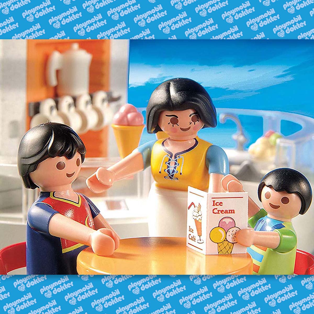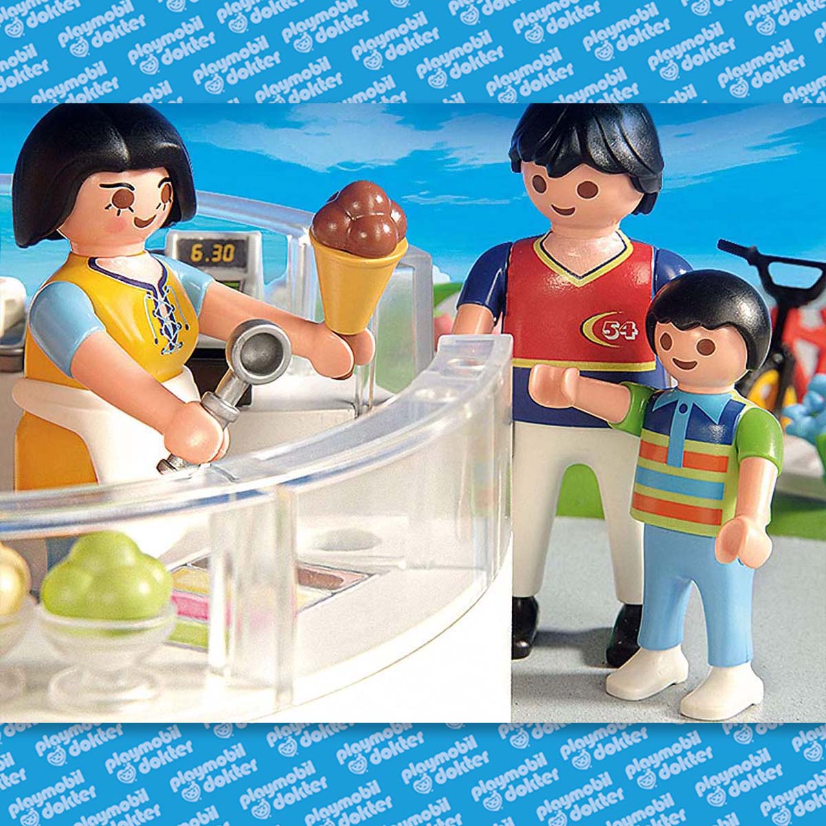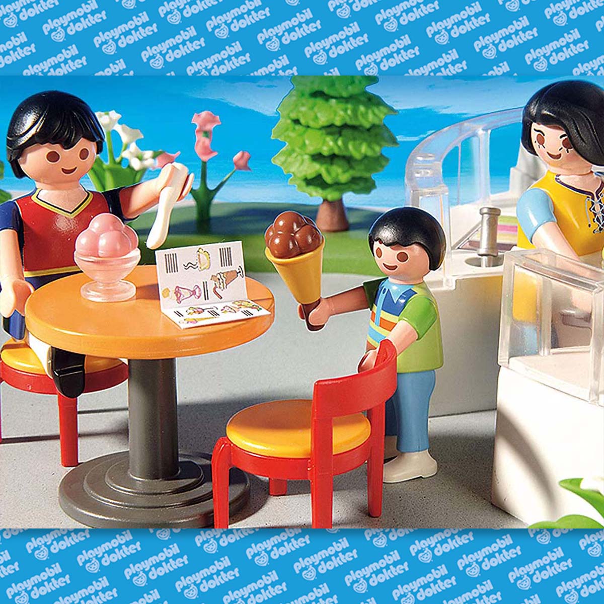 Ga snel naar de ijssalon van Playmobil en kies er je favoriete smaak! Je Playmobil speelfiguren kunnen nu naar de ijssalon. Zittend aan het tafeltje genieten zij van de heerlijkste ijsjes en sorbets. Inclusief parasol, crossfiets en kassa.