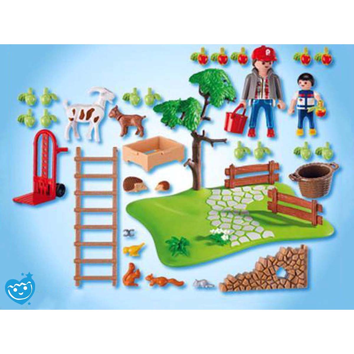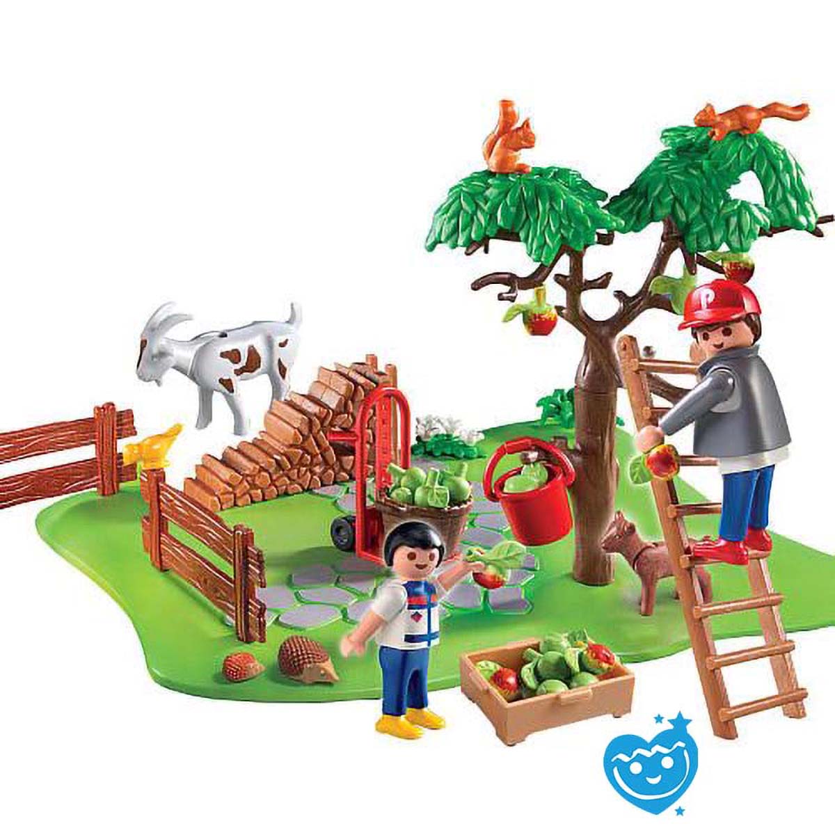 Deze Playmobil appels zijn klaar om geoogst te worden. Allemaal hard aan het werk en plukken maar! Je dierenvriendjes komen even gezellig een kijkje nemen. Voorzien van allerlei leuke accessoires zoals steekwagen, appelmand, ladder, hekken etc. Compacte set super leuk als uitbereiding van je boerderij!