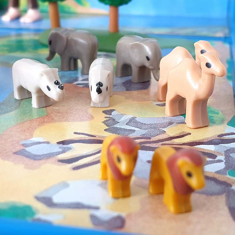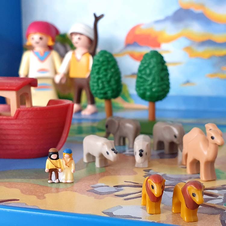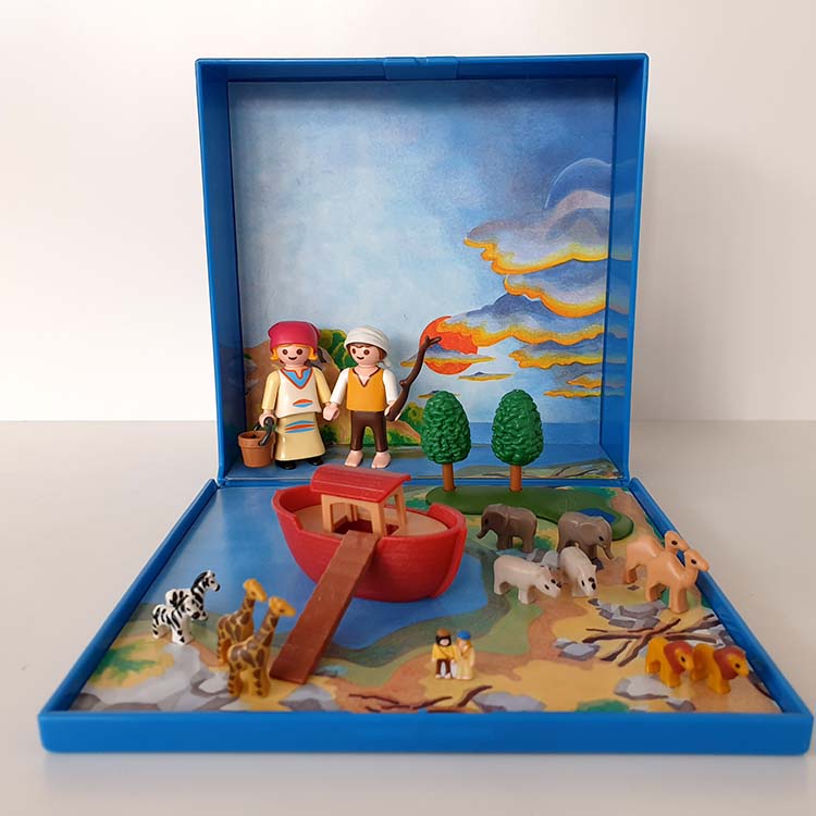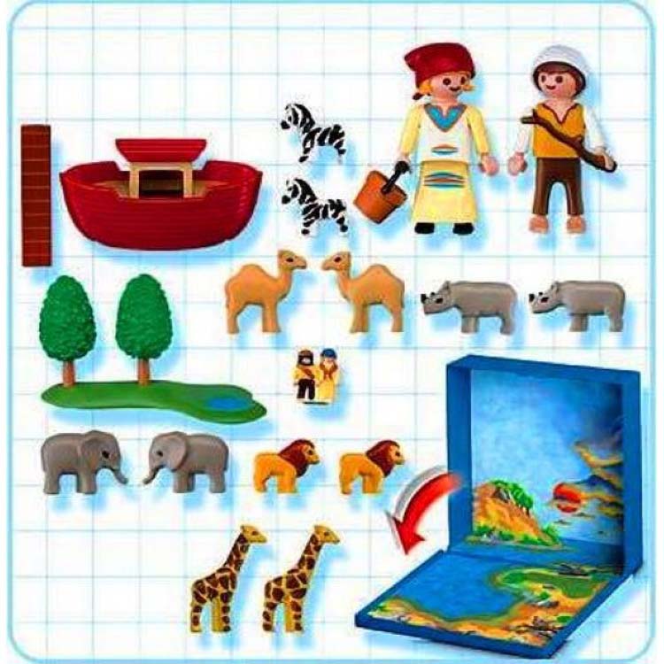 Dankzij Playmobil Micro kun je je favoriete Playmobil thema in pocket formaat overal mee naar toe nemen. Alle Playmobil Micro accessoires zijn magnetisch en dat is handig en praktisch voor onderweg. Open de handige pocketbox en begin met spelen. het Playmobil jongetje en meisje spelen hun favoriete Bijbelverhaal Noach na. Inclusief Playmobil micro Ark van Noach, 2 zebra’s, 2 dromedarissen, 2 neushoorns, 2 olifanten, 2 leeuwen en 2 giraffen.
