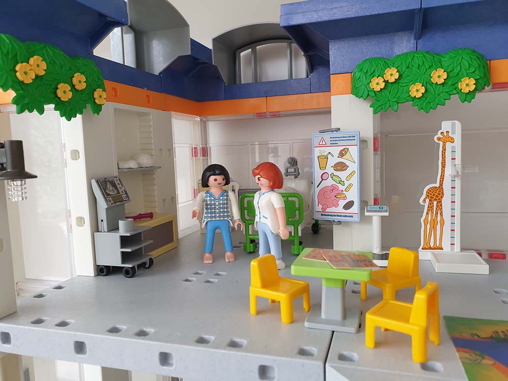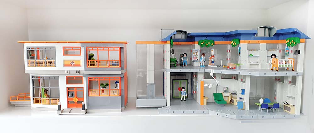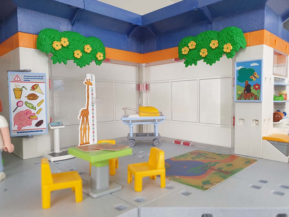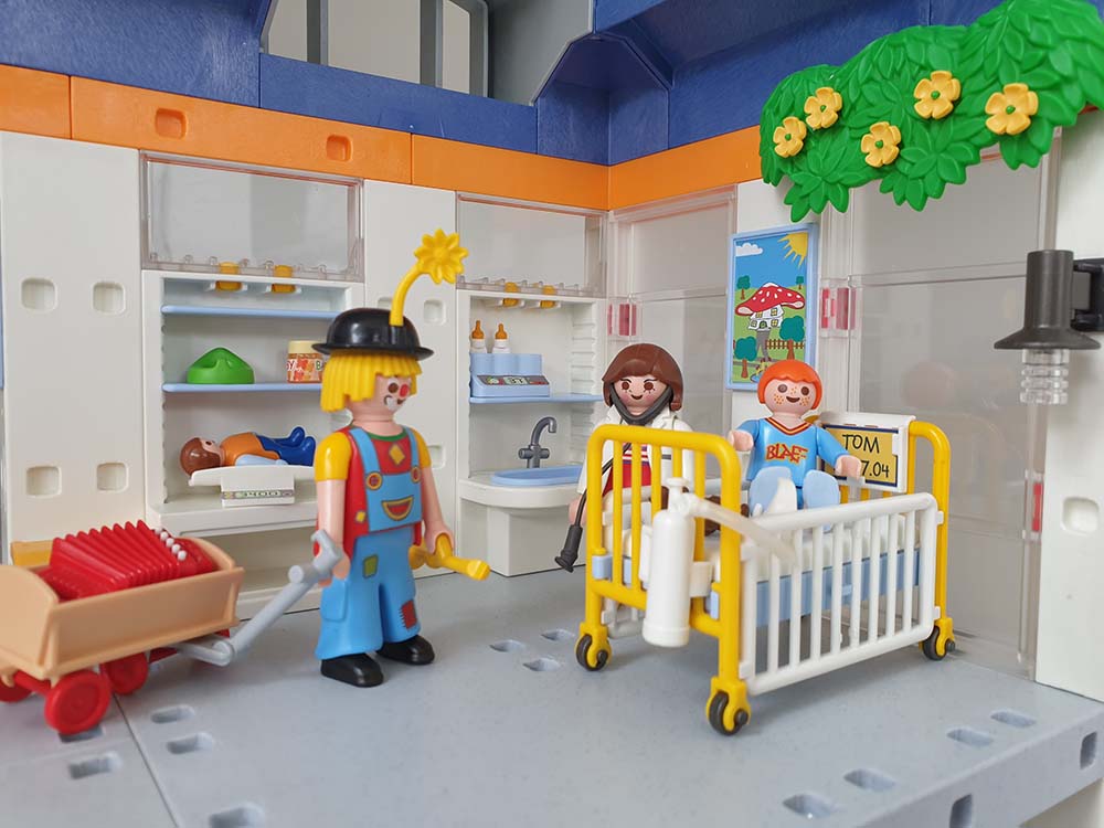Dit grote Playmobil ziekenhuis is groot en leuk ingericht, ze heeft een lift waarin plaats is voor een verrijdbaar ziekenhuisbed. De operatietafel is verstelbaar. Het ziekenhuis heeft ook een receptie, een ruime baby- en kinderafdeling met Cliniclown en nog veel meer leuke accessoires. De afmeting van het ziekenhuis zijn 75x50x40cm (LxBxH). Inclusief maar liefst 8 Playmobil speelfiguren.
