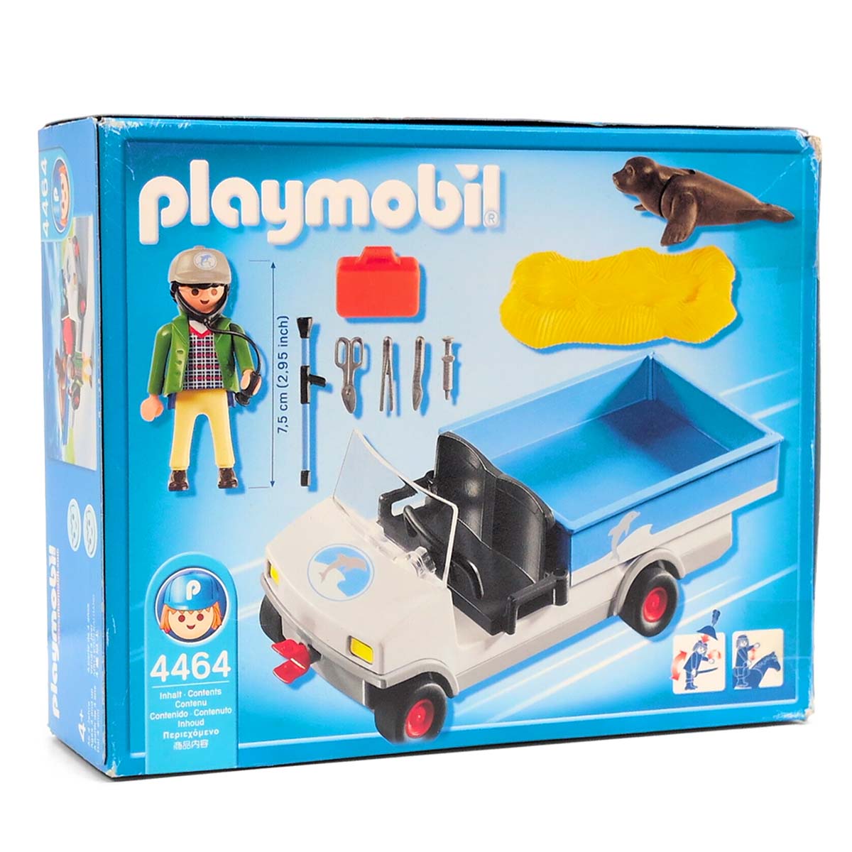In de dierentuin rijdt deze auto rond met een zieke zeehond. Op transport naar je nieuwe Dolfinarium. In deze Playmobil 4464 dierentuinauto kan de arts of dierenverzorger ook andere dieren vervoeren naar de dierenverblijven in de Playmobil dierentuin. Inclusief Playmobil zeeleeuw.