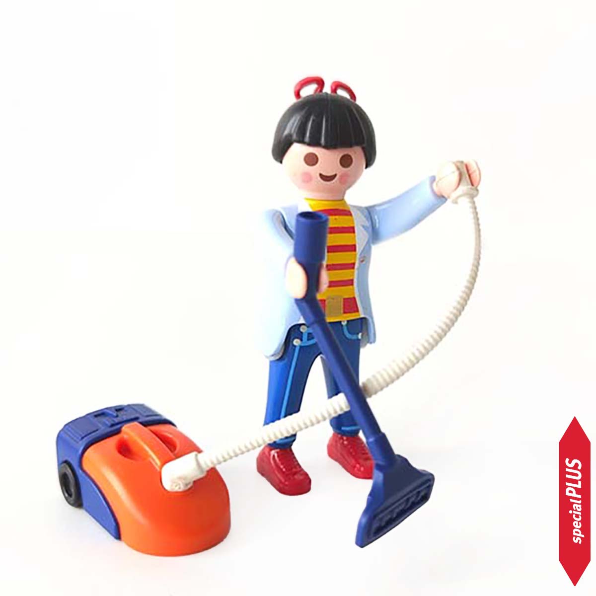 Met de Playmobil Special Plus vrouw met stofzuiger speelset laat je zien dat je ook leuke rollenspellen kunt bedenken die te maken hebben met het alledaagse leven. De Playmobil speelfiguur in de set gaat aan de slag na een drukke dag met het schoonmaken van haar huis. Hierbij beweegt ze behendig met de stofzuiger door de kamers, haar eigen oase van rust creërend terwijl ze het stof en vuil verwijdert. Na het schoonmaken bergt ze de stofzuiger op en ontspant ze met een kopje thee, zichzelf belonend voor haar harde werk.