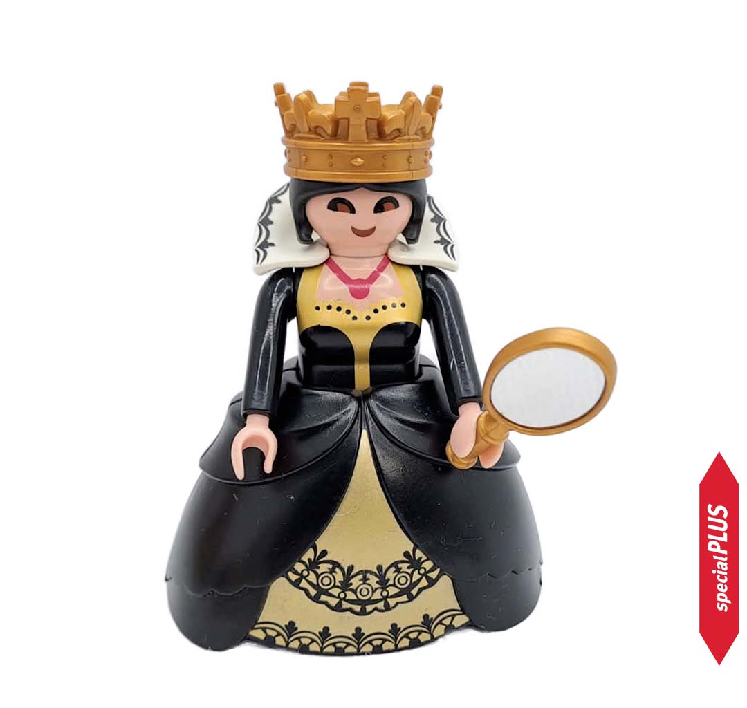 Wat is een sprookje zonder slechterik? Met deze zwarte koningin van Playmobil kan het verhaal beginnen! Inclusief afneembare rok, kraag, kroontje en handspiegeltje.