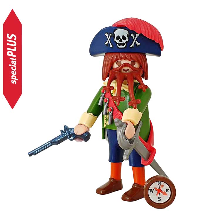 Deze Playmobil Special Kapitein van de Piraten roept zijn orders naar de stuurman en zijn zeerover bemanning. De Playmobil piraat bepaalt met behulp van het kompas de koers. Inclusief pistool, een zwaard en een kompas.
