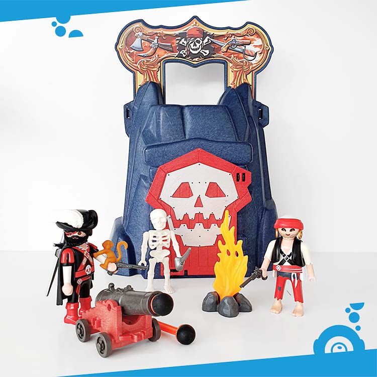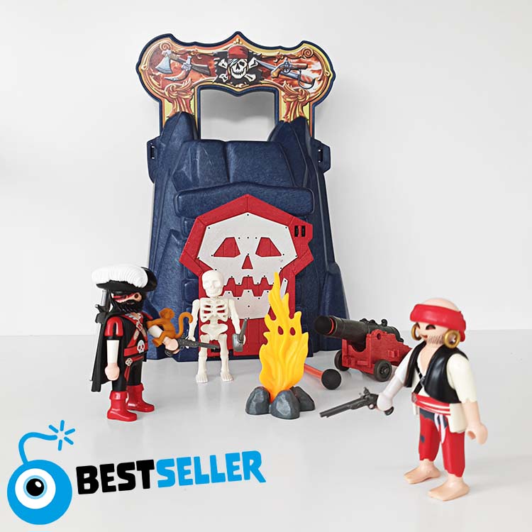Deze piratentoren van Playmobil kan overal mee naartoe genomen worden. Bevat een meeneem toren, twee gevaarlijke piraten en echte piraten accessoires zoals een kanon, een aapje en een heus skelet dat licht geeft in het donker.
