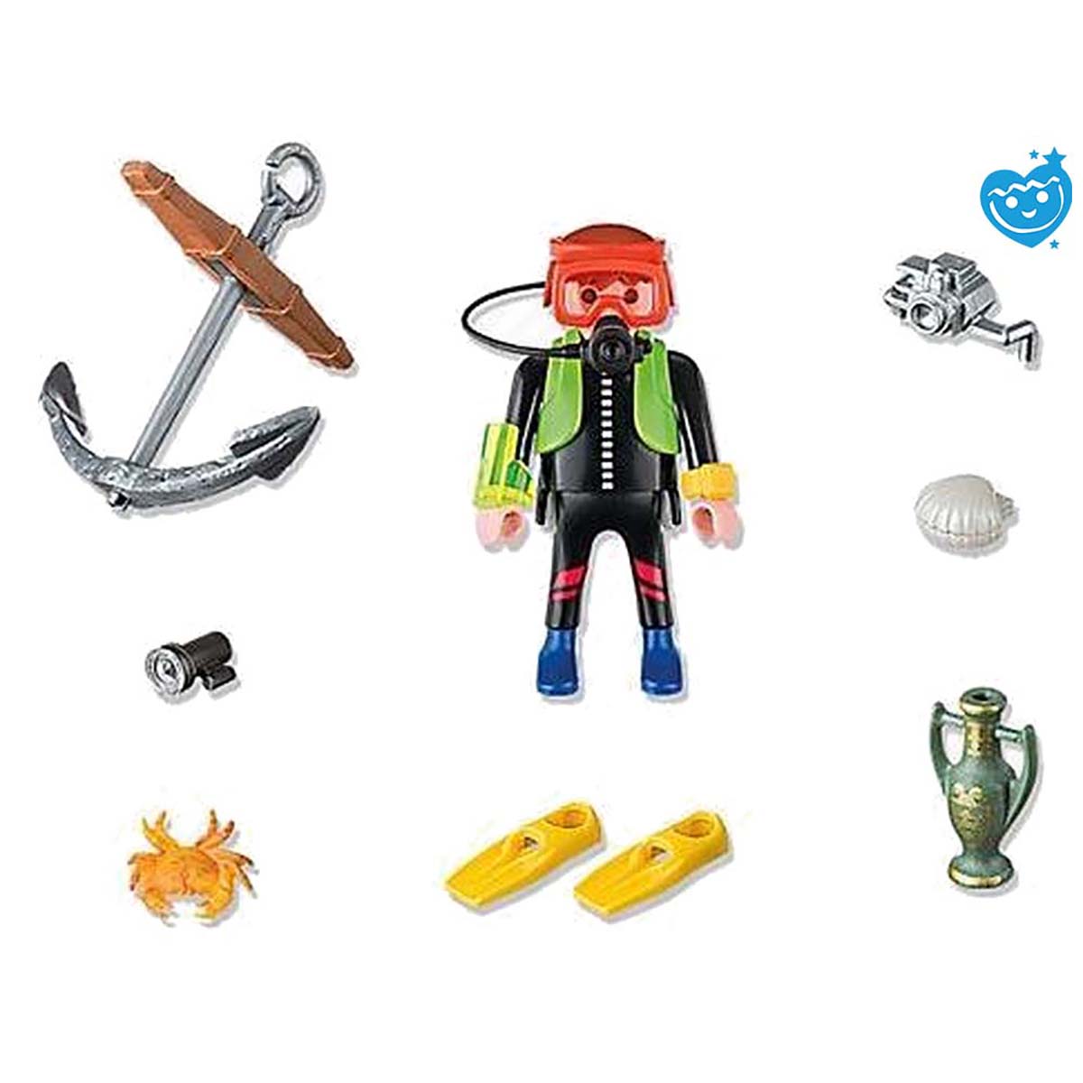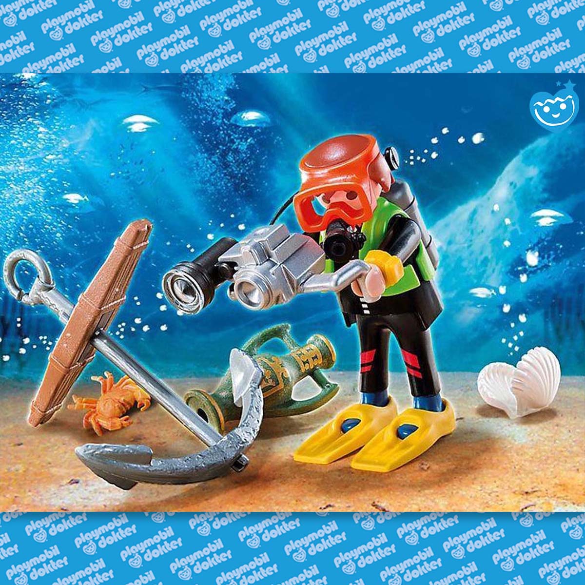 Playmobil 4786 Special Plus Diepzeeduiker. Ontdek de schatten in de onderwaterwereld! Inclusief scheepsanker, krab, oester, vaas, duikbril, onderwatercamera en flippers.