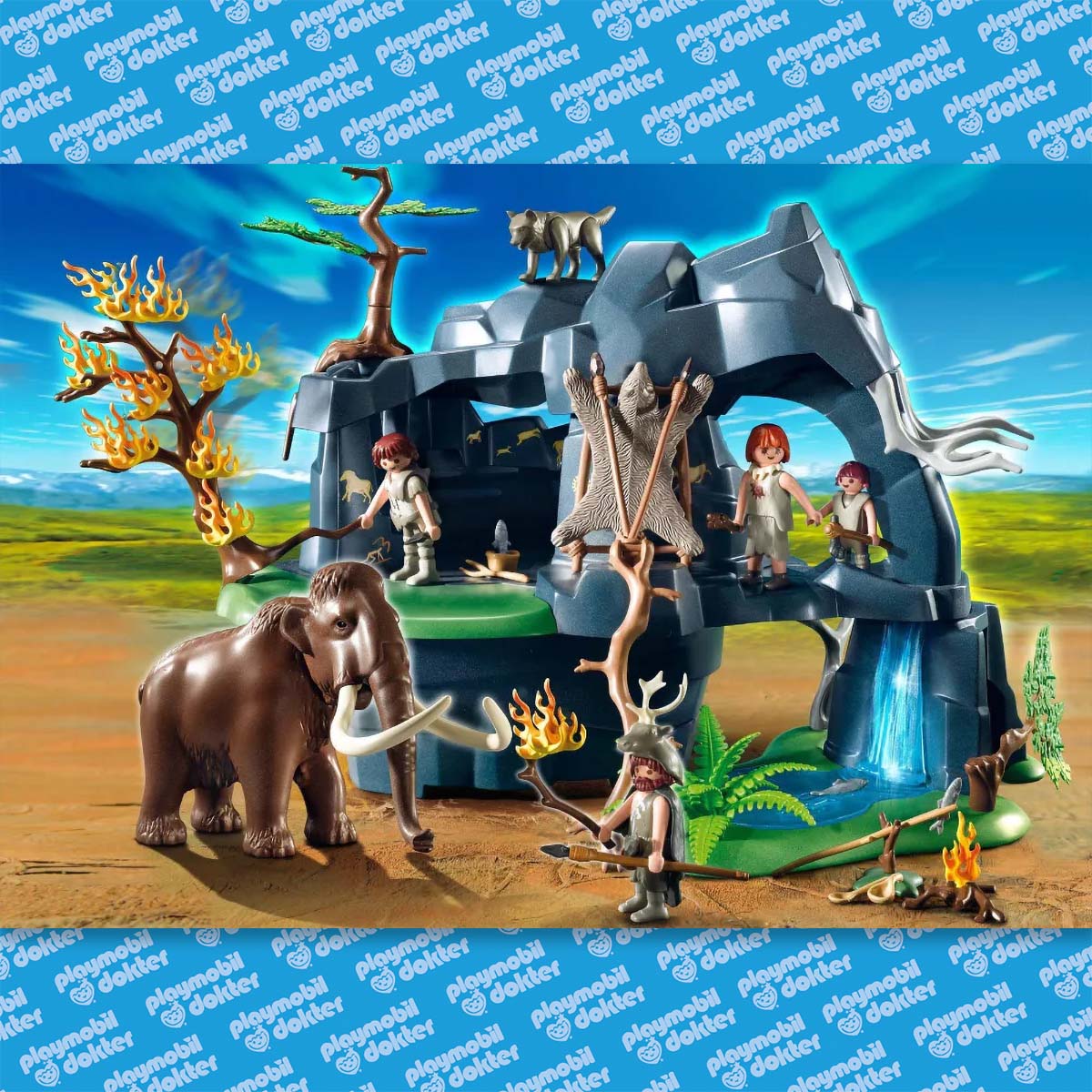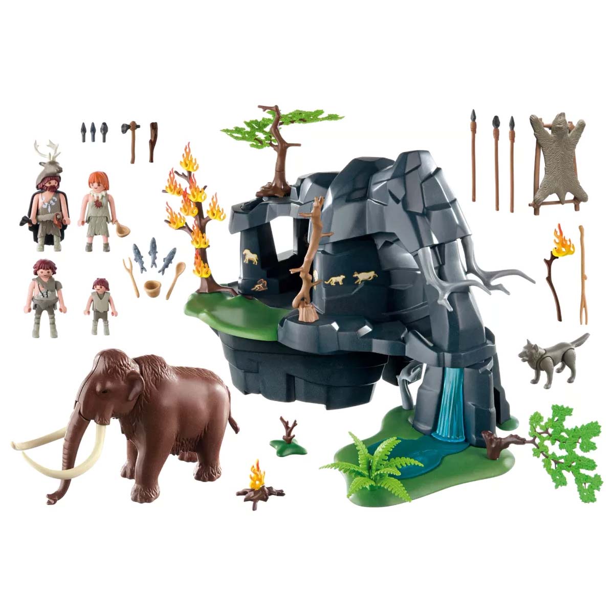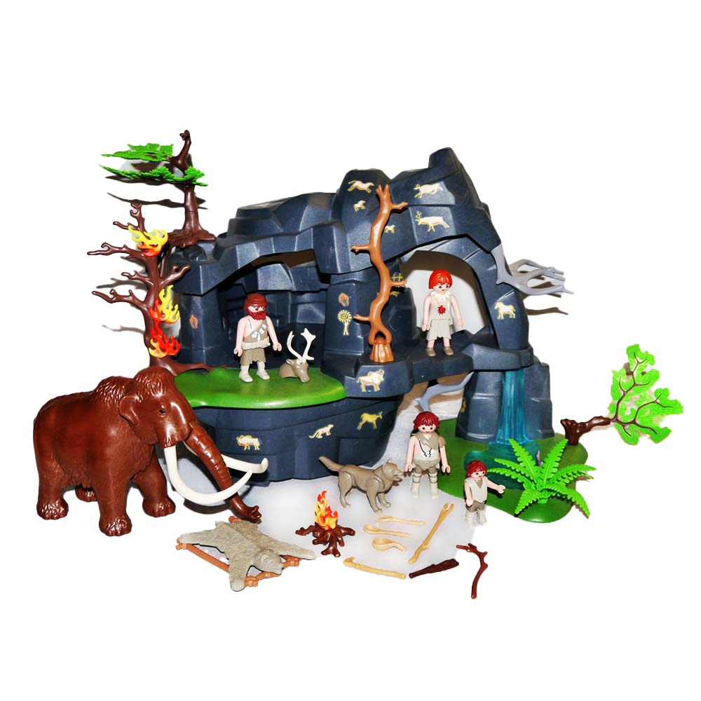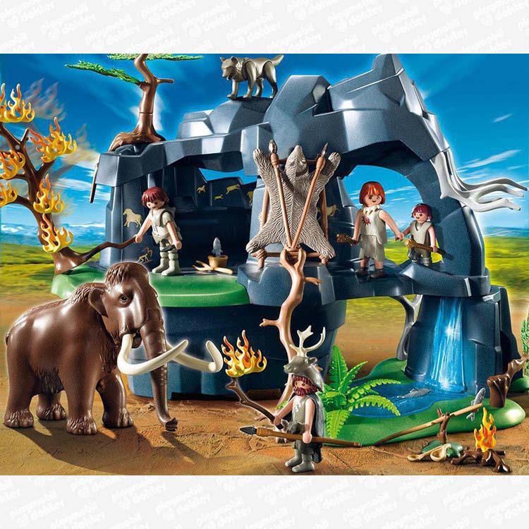 In de grot bevindt zich een waterval, zodat de oerbewoners niet op zoek hoeven naar water. Ook staan er prachtige rotstekeningen op de muren. De grot is 40 x 26 x 28 cm groot. Er zitten onder andere 4 oermensen, een mammoet en een wolf in deze Playmobil set.