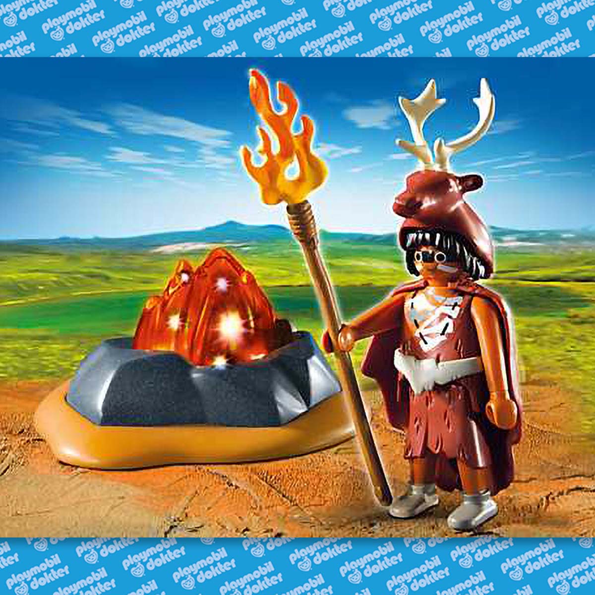 Gelukkig zijn vuurwachters nergens bang voor en houden ze de hele nacht een oogje in het zeil! In de oude steentijd maken inwoners van Playmobil fijne werktuigen en jachtwapens van vuursteen. Voor extra warmte dragen ze dierenvellen en maken ze kampvuren. Het vuur diende niet alleen om de jagers warm te houden, maar ook om wilde dieren op afstand te houden. Daarom is het heel belangrijk dat het vuur de hele nacht blijft branden! Gelukkig zijn vuurwachters nergens bang voor en houden ze de hele nacht een oogje in het zeil! Bij de stoere vuurwachter hoort een LED-verlichte rots, die ervoor zorgt dat het flikkerend kampvuur net echt lijkt!