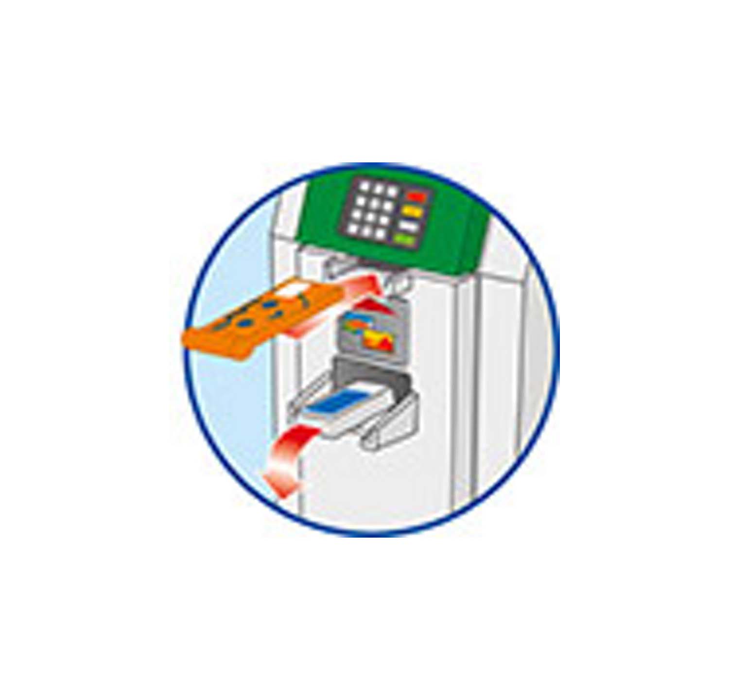 Deze moeder gaat samen naar de bank om een spaarrekening te openen. De bankmedewerker neemt met hun alle aanvraagformulieren door en laat hen de werking van het pinautomaat zien. Inclusief bankkluis, balie met veiligheidsglas.