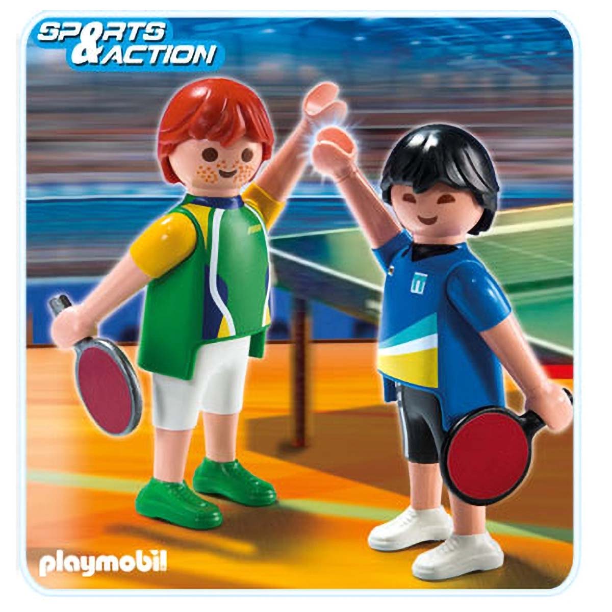 Deze 2 Playmobil tafeltennissers hebben allebei zin in een spannende wedstrijd! Wie zal er winnen? Inclusief 2 Playmobil speelfiguren en 2 tafeltennisbatjes.