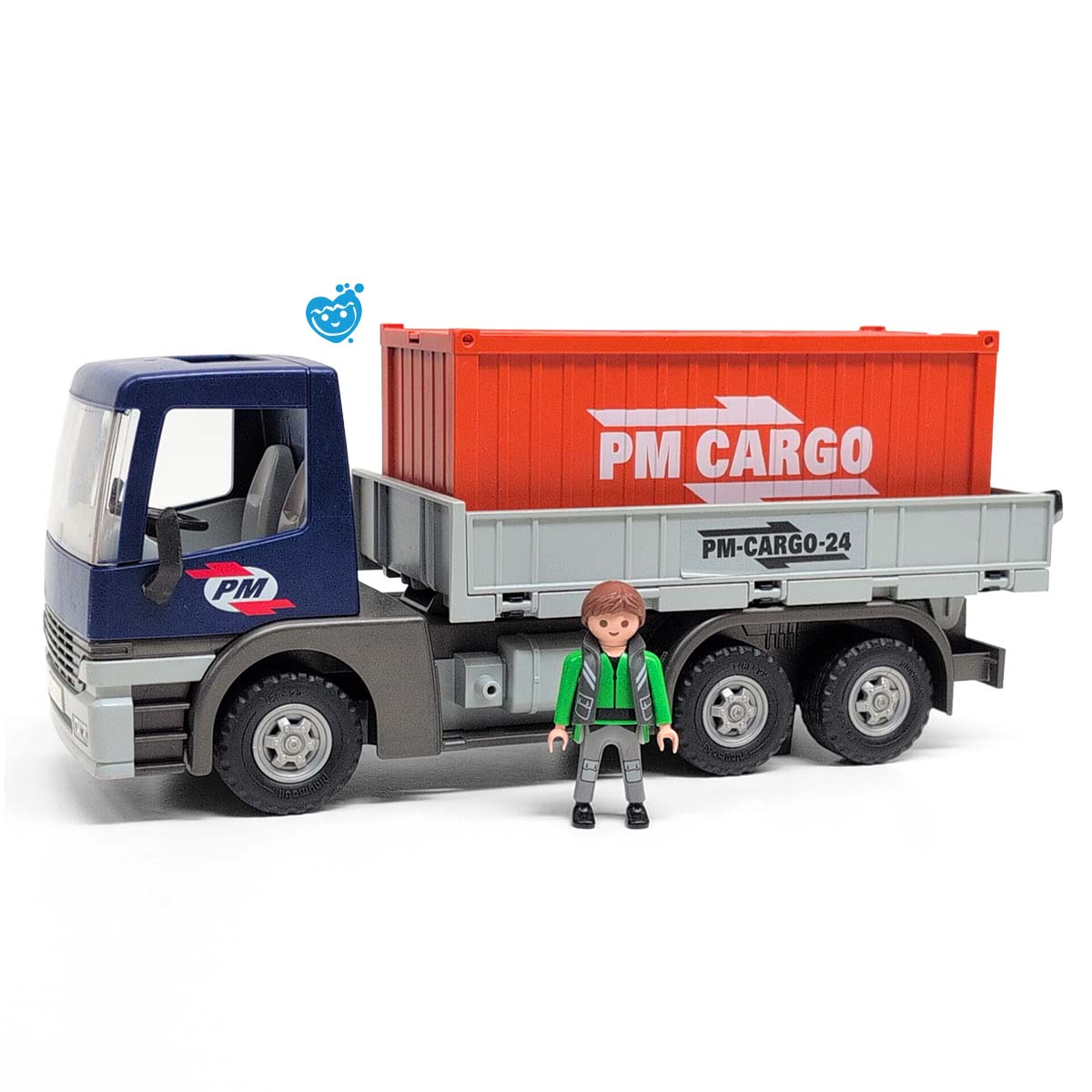 Playmobil 5255 Cargo truck met container. Deze container moet nog op het Playmobil schip geladen worden, snel! Deze Playmobil?vrachtwagen is RC-compatible met grote container, afneembaar dak en?laadplatform dat kan kiepen. Incl. chauffeur en brandblusser. Tip: Met de Playmobil?RC module?(art. 6914) kan je deze vrachtwagen op afstandbesturen!