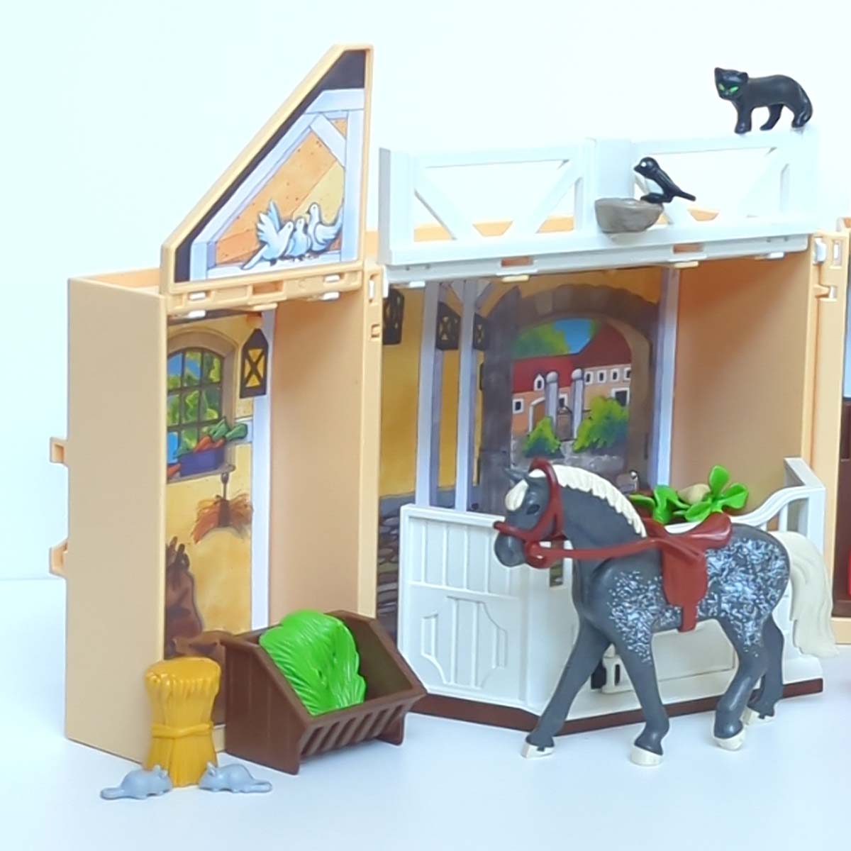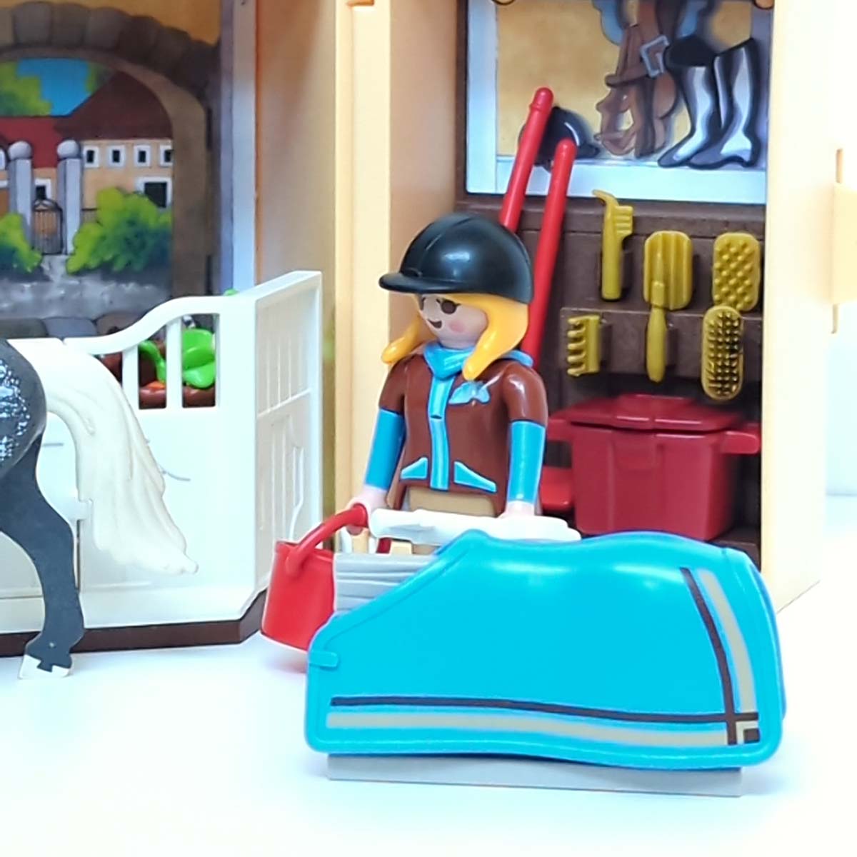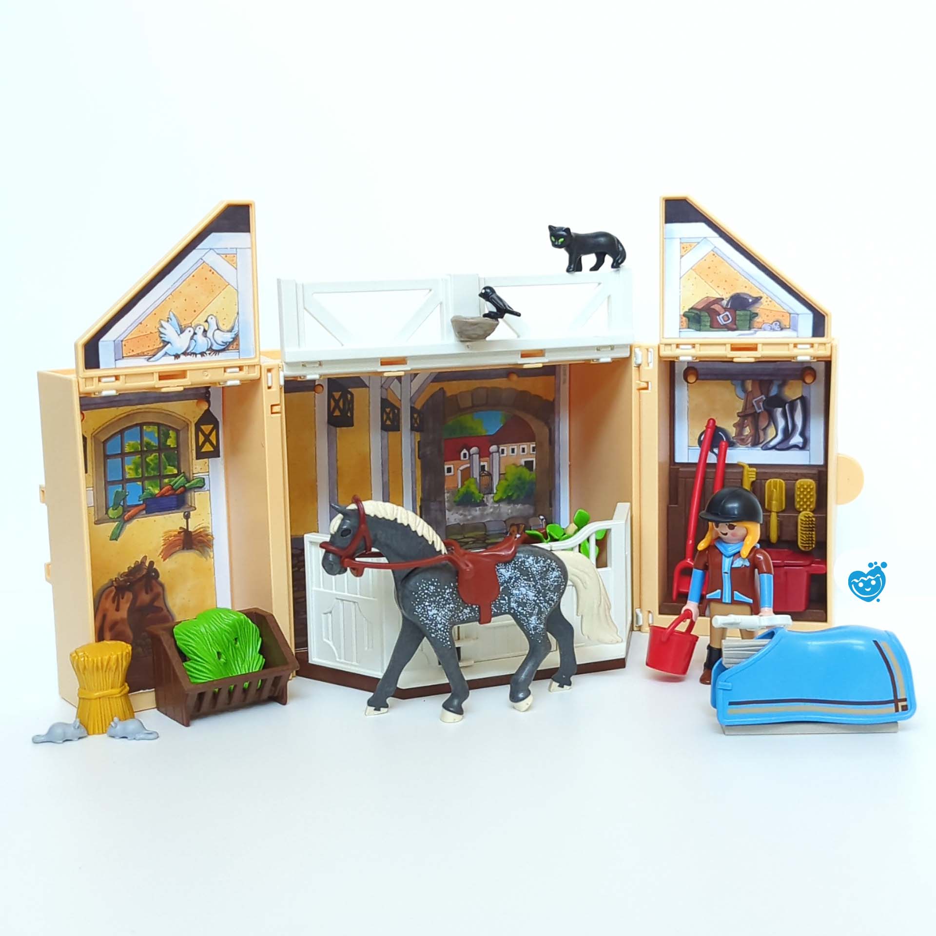 In deze geheime box, zit jouw paardenstal als je hem open vouwt ontdek je onmiddellijk je favoriete speelwereld: de stal met je paard. Houd het sleuteltje vooral goed bij je! Inclusief een Playmobil paard, zadel, borstels, voer, muizen, vogeltje, poesje en en Playmobil figuur.