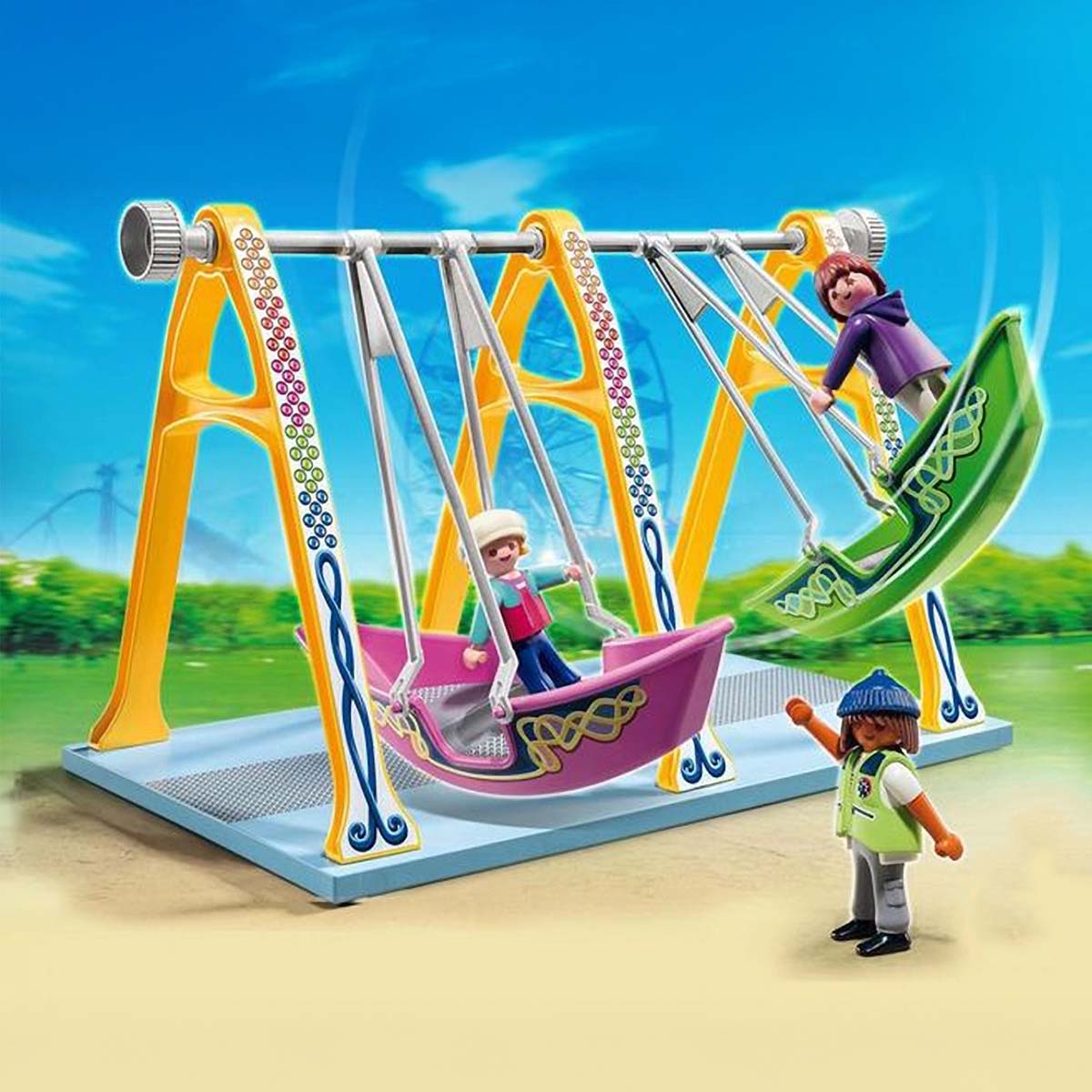 Wat een plezier met deze Playmobil schommelboot. Inclusief 3 Playmobil speelfiguren. Gezellig met het gezin de hele dag naar de Kermis. Durf jij over de kop?