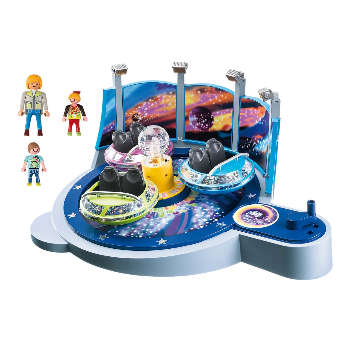 Laat de gondels ronddraaien door aan de hendel te draaien van deze Breakdance met lichteffecten. Natuurlijk is de lichtmodule aanwezig bij deze aankoop.