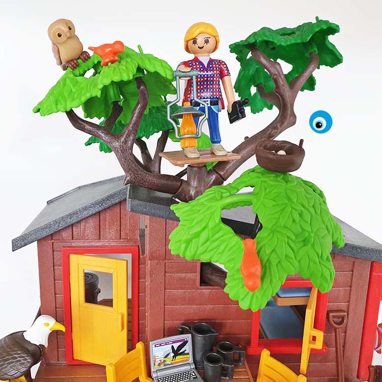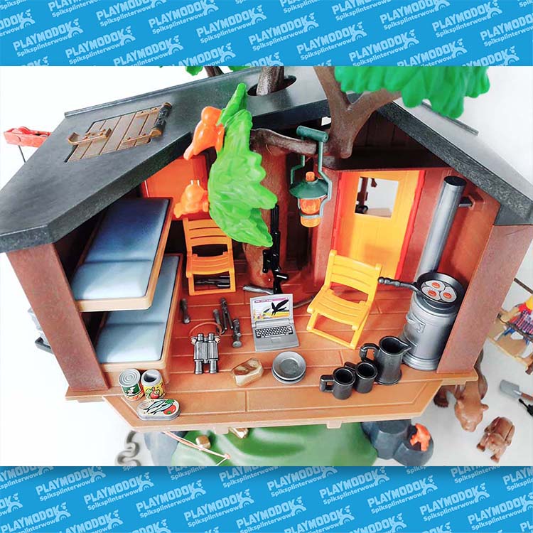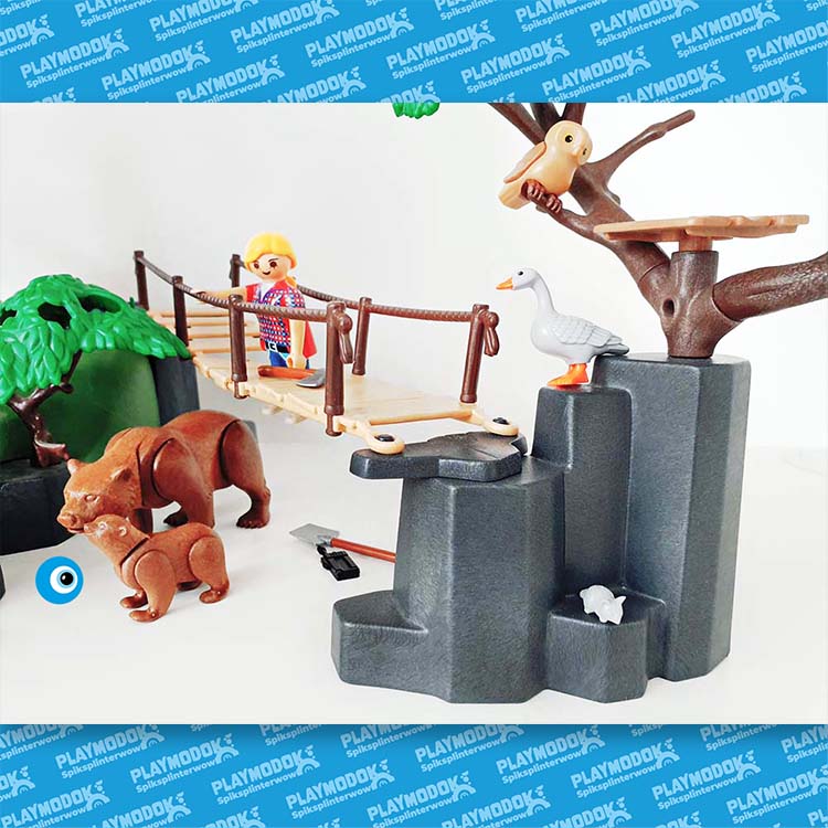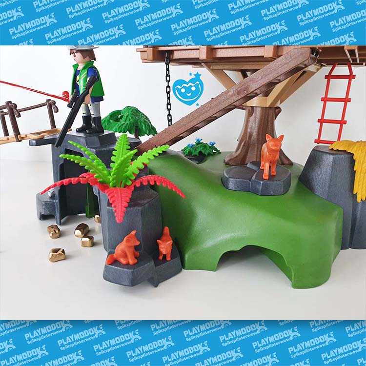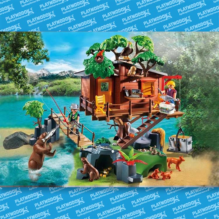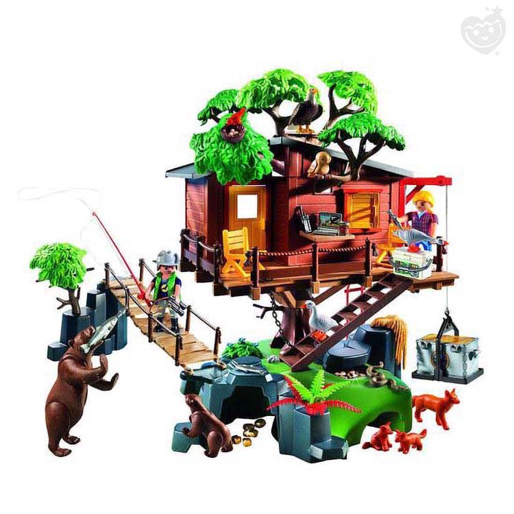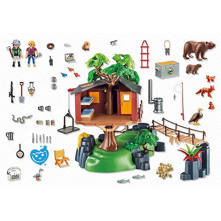 De 2 Playmobil expeditieleden zijn goed uitgerust met de allernieuwste snufjes. Op het observatiedek hebben ze een prachtig uitzicht over het bos. De beren en vossen komen uit hun grot om op jacht te gaan. Moeder beer heeft al vis gevangen voor haar jong. ’s Avonds koken de expeditieleden hun avondmaal op het fornuis en daarna maken zij hun bedden in de boomhut klaar voor een goede nachtrust. Nu kunnen ze veilig dromen van de gouden schat, die verborgen ligt aan de voet van de heuvel. Deze avontuurlijke speelwereld van Playmobil belooft spannende wildernis-excursies door de beren, vossen, adelaar, bever, uil, gans en vissen, etc. De natuurgetrouwe voorstelling en de diverse diersoorten staan garant voor urenlang afwisselend speelplezier. De set is dan ook een ideaal cadeau voor avontuurlijke kinderen.