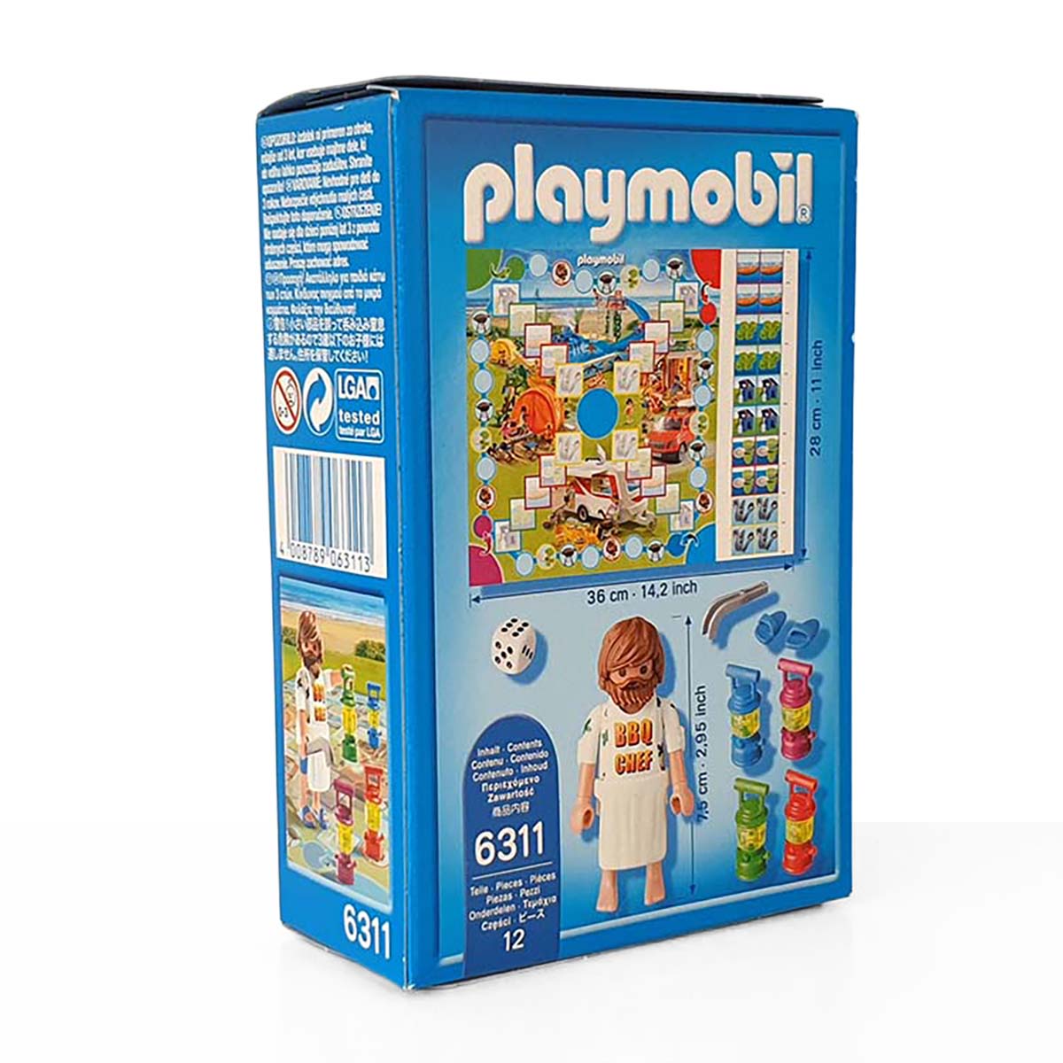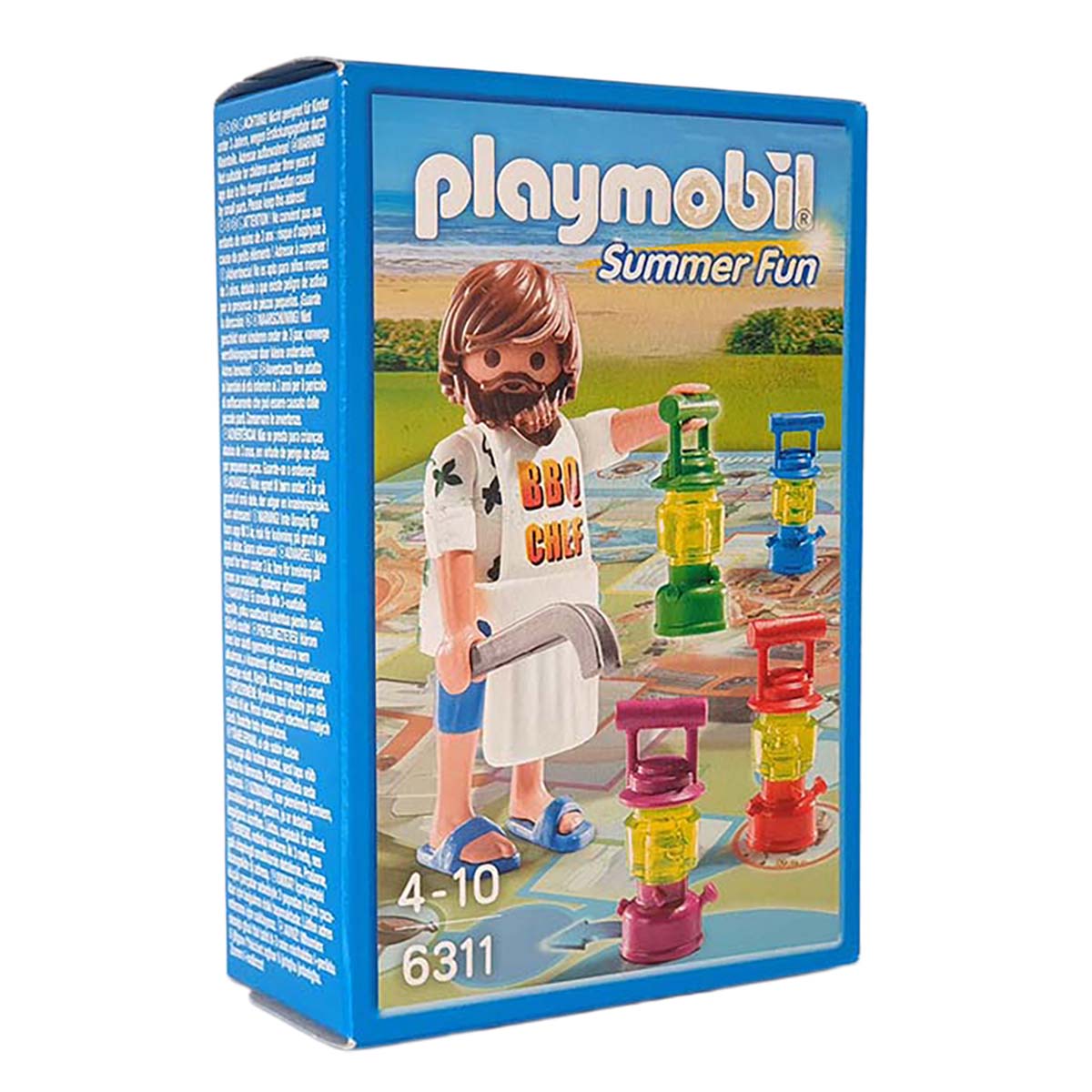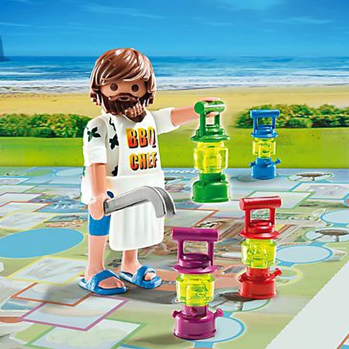 Het leuke Camping gezelschapspel voor 4 personen. Het spel bestaat uit een Playmobil figuur “BBQ Chef”, een speelbord, een dobbelsteen en leuke accessoires.