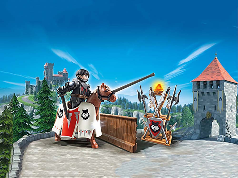 Deze bewaker van Baron Black komt uit de Playmobil wereld Kingsland. Inclusief uitrusting voor een riddertornooi: toernooipaard, omheining en wapenstandaards voor de diverse strijdwapens. Met zijn afneembare wapenuitrusting is ridder Rypan klaar voor de strijd. Combineerbaar met artikel Koningstribune met Alex (art. 6695).