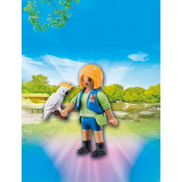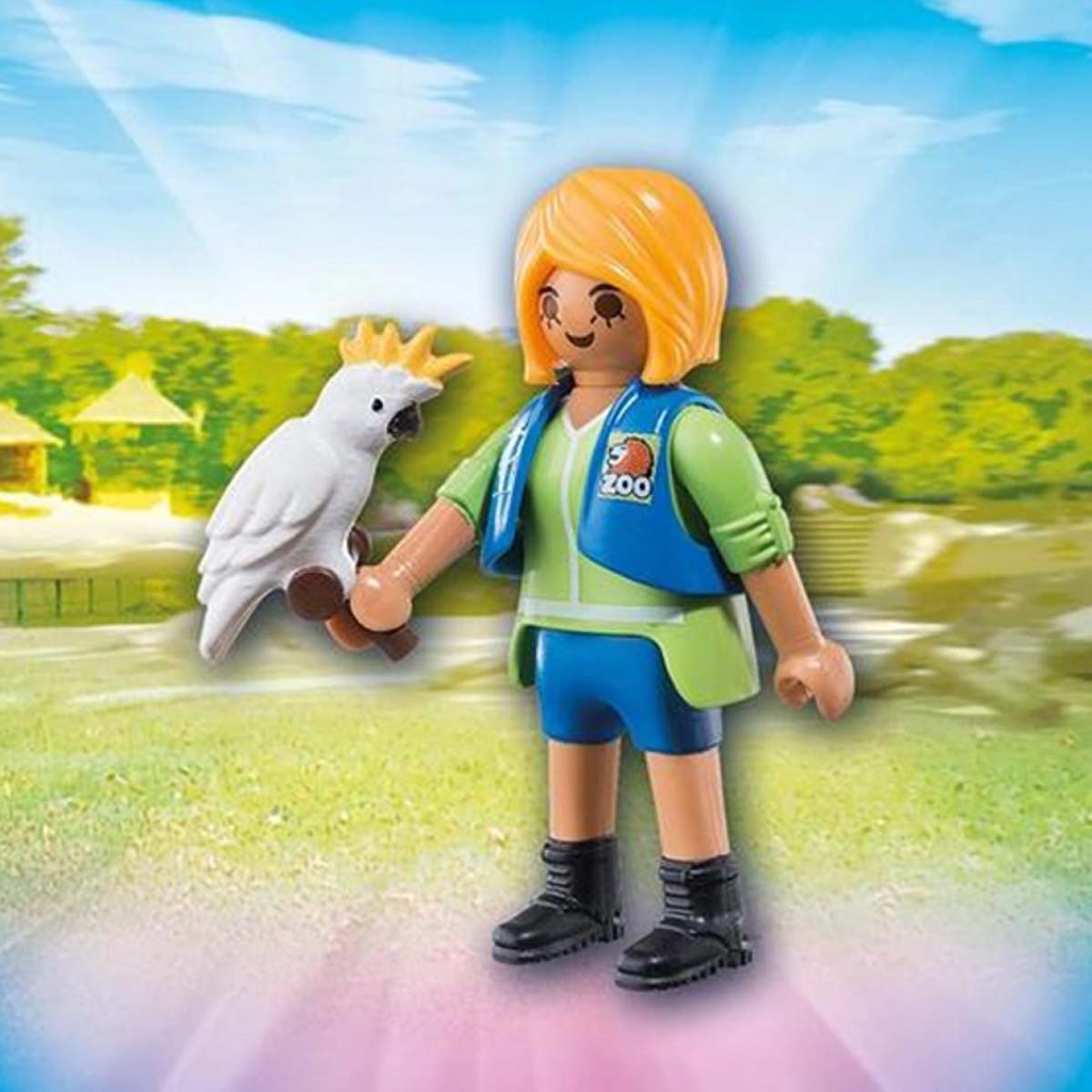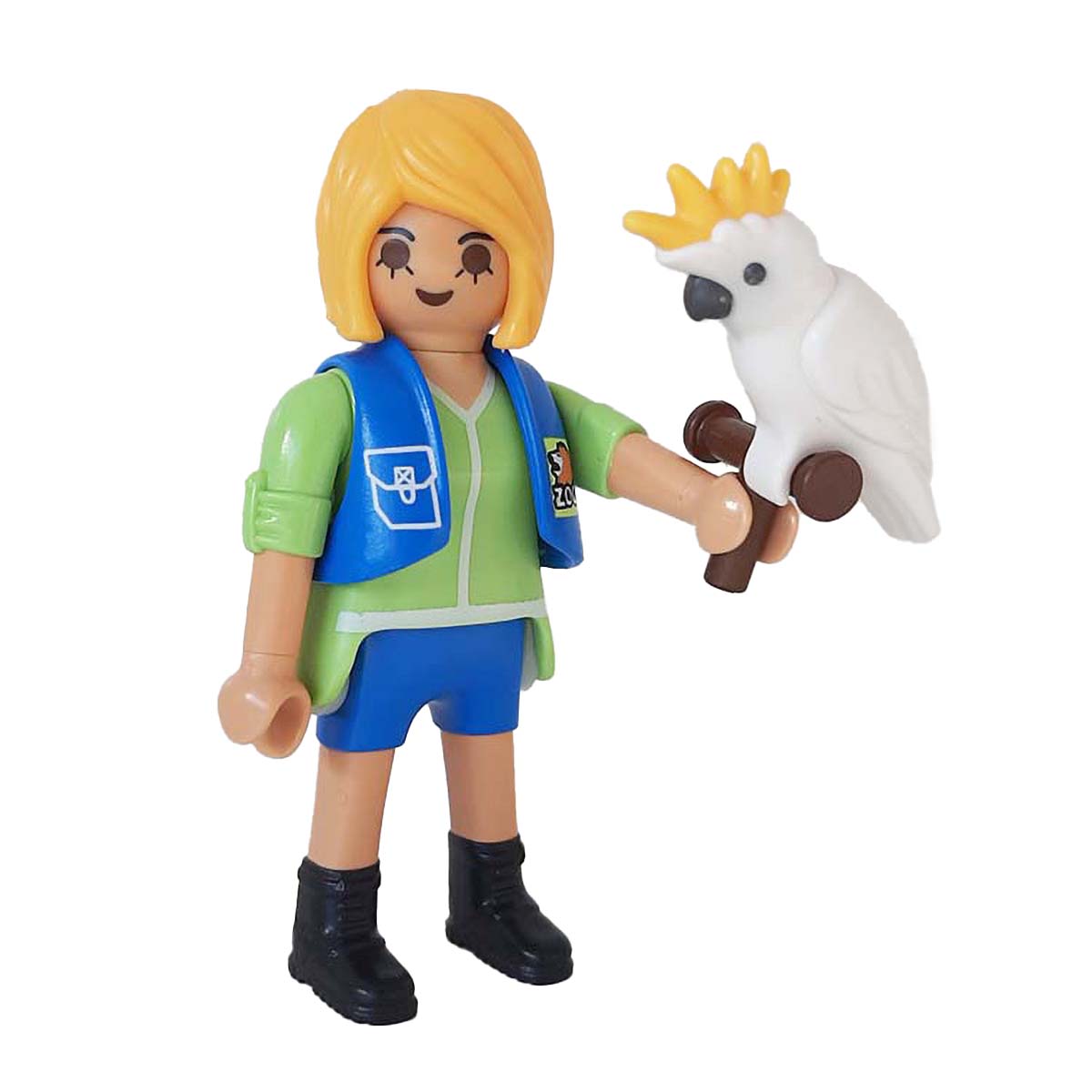 Playmo-Friends zijn je nieuwe favoriete Playmobil speelfiguren om te verzamelen. Deze verzorgster laat alle bezoekers van de Playmobil dierentuin vol trots de nieuwste bewoner een mooie kaketoe zien.