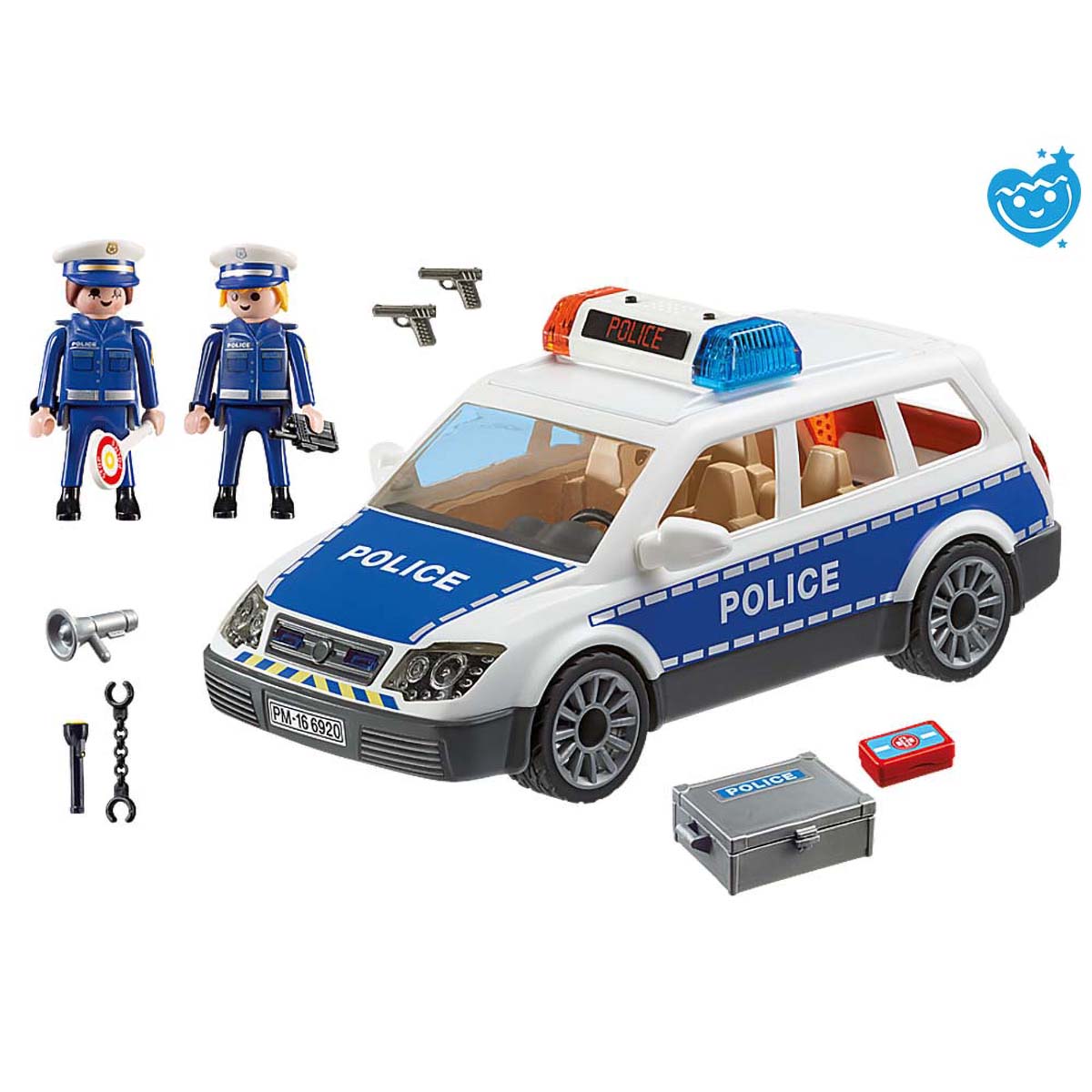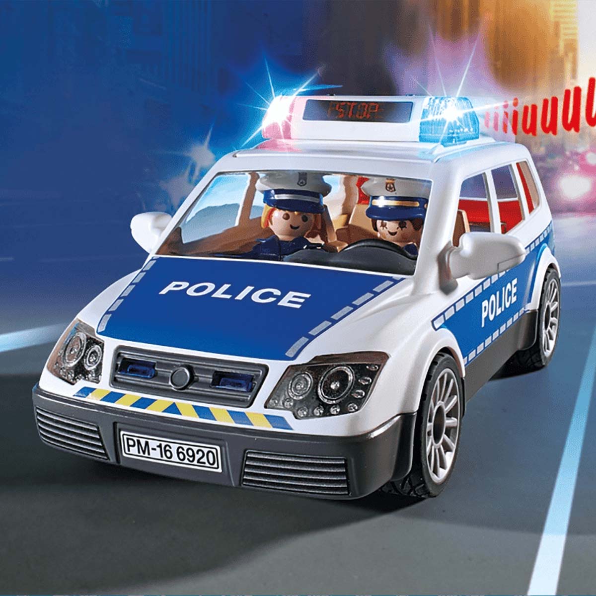 De Playmobil politiepatrouille krijgt een melding: een boef is op de vlucht! Snel rijden ze naar de plaats van delict en zetten met hun politiewagen de achtervolging in. Om dat in alle veiligheid te kunnen doen, zetten ze hun sirene en lichten op. Zo weet het andere verkeer dat ze moet oppassen en plaats moeten maken voor de politieauto. Zullen ze de boef kunnen volgen en oppakken? Inclusief 2 Playmobil agenten, handboeien, megafoon, 2 pistolen, zaklantaarn en EHBO koffer.