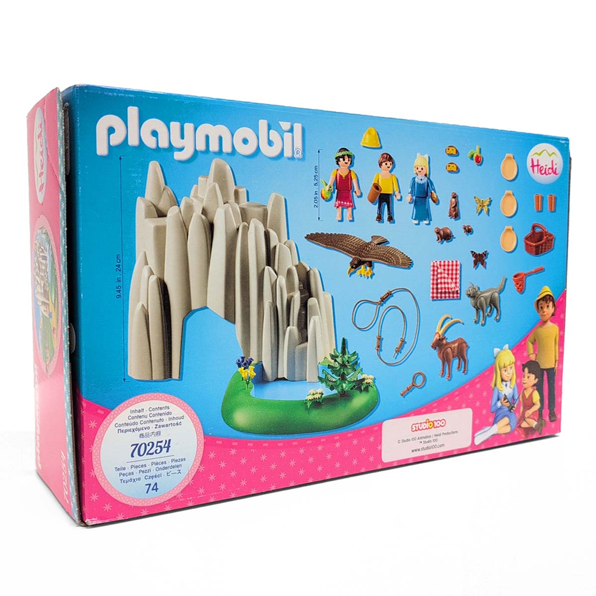 Het kristalmeer kan gevuld worden met water. Gebruik de waterpomp om water op een pad door de rotsen te pompen. Inclusief picknickaccessoires en bergdieren. De kleine Heidi houdt vooral van dieren en de natuur. Ze brengt haar tijd graag buiten door met haar beste vriend Peter en haar goede vriend Clara. Bij mooi weer wandelen ze graag met z’n drieën rond het pittoreske kristalmeer. Het water spat van de rots in het kristalheldere meer. Heidi houdt meteen haar voeten in het water. Het leven in de bergen is gewoon geweldig! De speelset bevat de figuren Heidi, Peter en Clara, evenals een kristallen meer met rotsen. Het zwembad van het kristalmeer kan gevuld worden met water. Door de pomp te activeren kan er een waterloop over de rotsen in gang worden gezet.