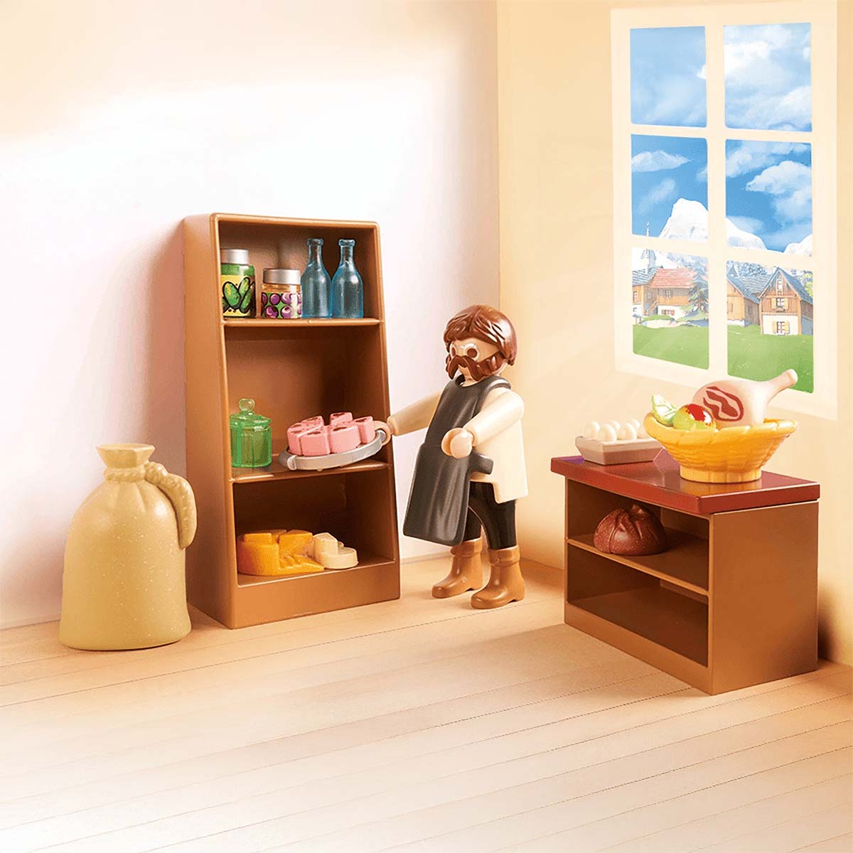 In dit Alpenwinkeltje ruikt het naar brood, kaas en gezelligheid. Meneer en mevrouw Keller weten alles van de dorpsroddels, maar verkopen ondertussen gewoon eieren en jam. De toonbank is hun wereld. De set bestaat naast de Playmobil speelfiguren meneer en mevrouw Keller, Theresa uit een toonbank, kassa, schorten, etenswaren, munten en diverse andere accessoires.