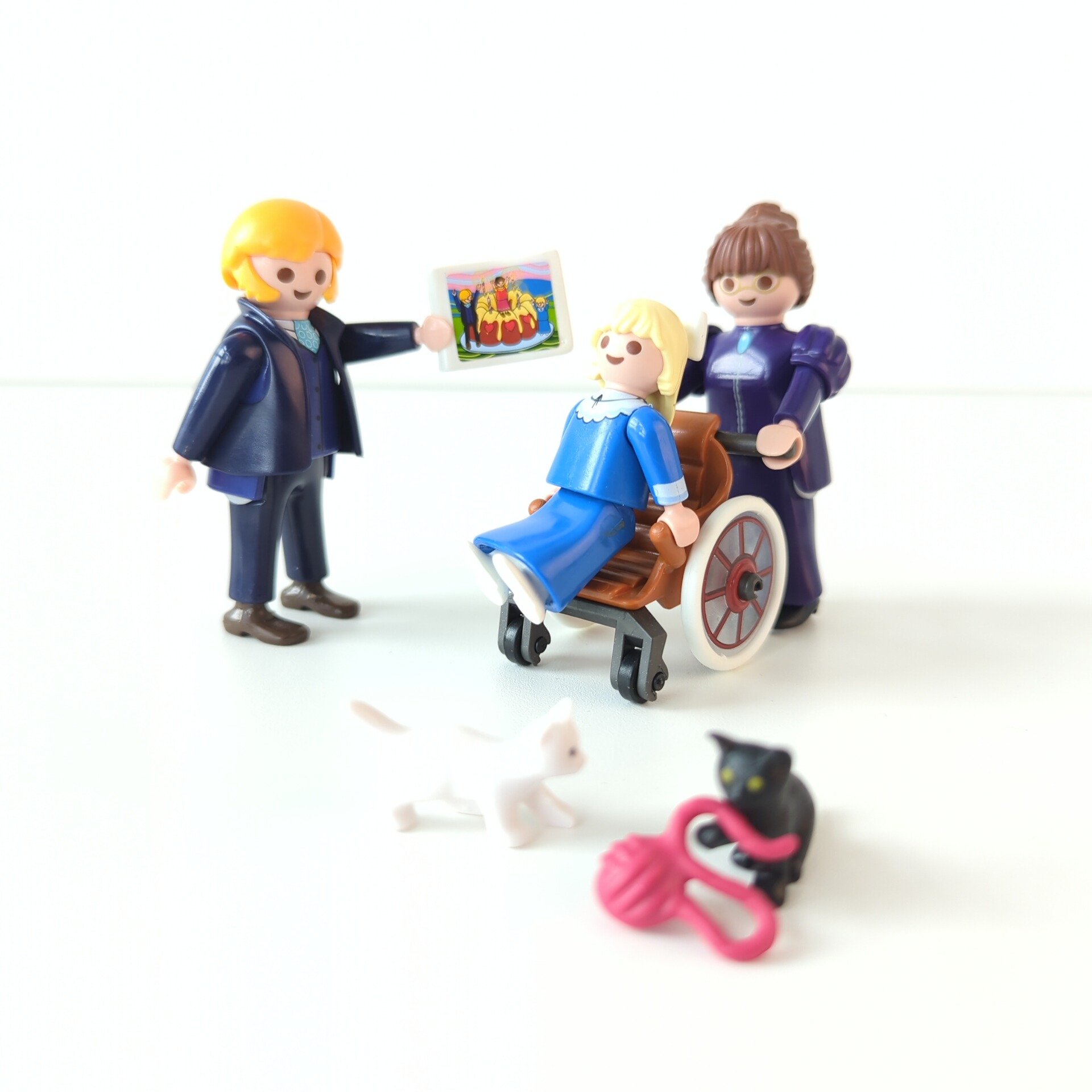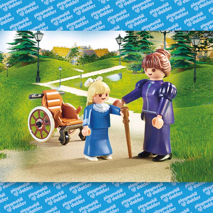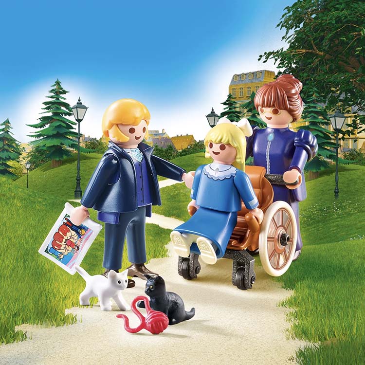 De speelset bestaat uit Clara met rolstoel, mejuffrouw Rottenmeier, Clara´s vader meneer Sesemann, twee kittens en nog veel meer extra´s.