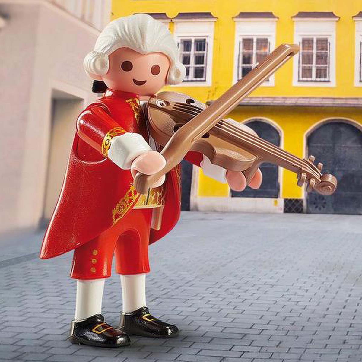 Dit unieke setje van Playmobil bevat de historische figuur Wolfgang Amadeus Mozart (Salzburg, 27 januari 1756 – Wenen, 5 december 1791). Al op de leeftijd van 4 jaar speelde Mozart piano en viool en componeerde hij zijn eigen stukken al op jonge leeftijd. Als wonderkind reisden hij en zijn oudere zus Nannerl vele jaren door Europa en gaf concerten. Mozarts werk en zijn onmiskenbare composities zijn nog steeds wereldberoemd in theaters en operahuizen. De populaire componist is nu ook verkrijgbaar als een Playmobil speelfiguur.