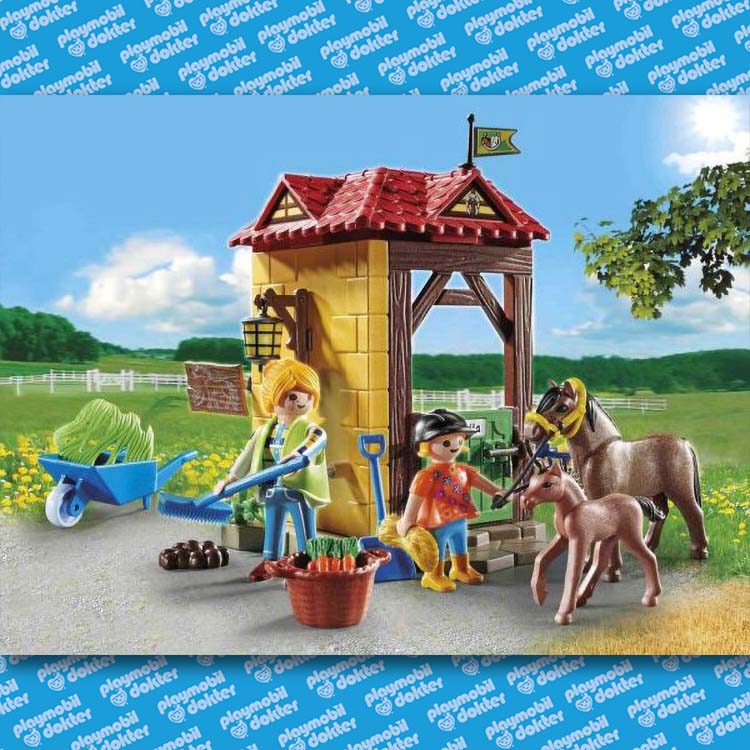 Het kleine meisje houdt meer van paarden dan van wat dan ook. Elke dag gaat ze naar de stal en zorgt ze voor haar favoriete pony’s. Eerst krijgen de moeder en het veulen een paar heerlijke worteltjes en dan is er vers hooi. Er is niets leuker voor de paardenliefhebber. Playmobil Starter Packs zijn een ideale kennismaking met de grote, kleurrijke Playmobil-wereld. De sets bestaan ​​uit een bouwdeel, 2 speelfiguren en extra’s, zijn snel in elkaar te zetten en speelklaar.