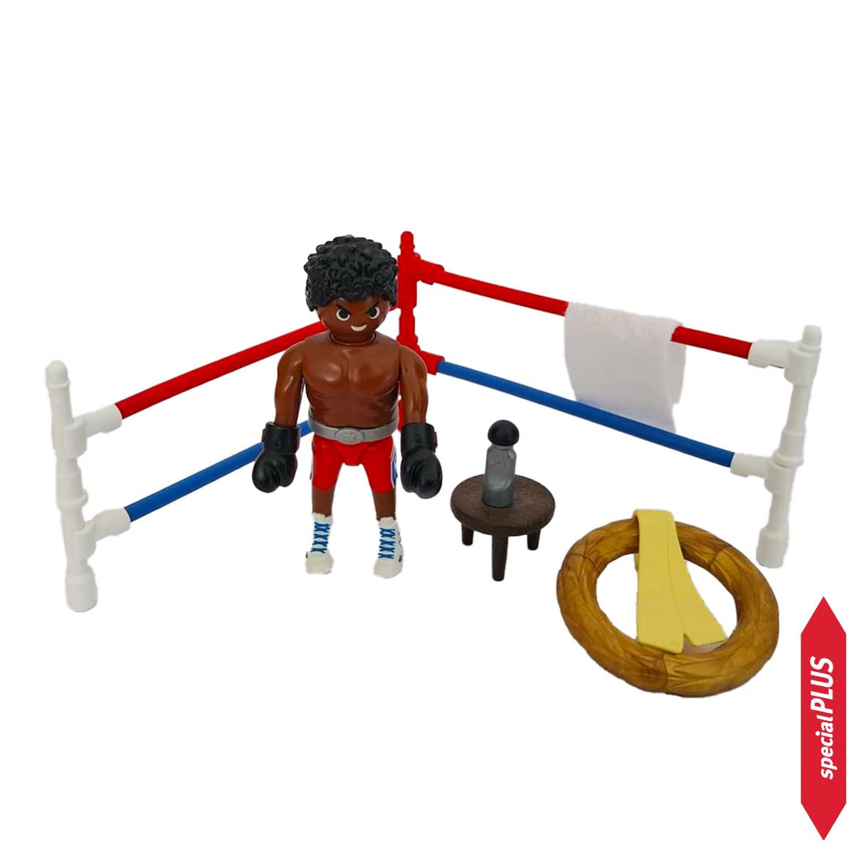 Hij is de onbetwiste kampioen. Zijn uitdager maakte geen schijn van kans tegen de bokser, die opnieuw de krans mag dragen. Playmobil Special Plus biedt extra speelplezier. Inclusief 1 Playmobil speelfiguur.