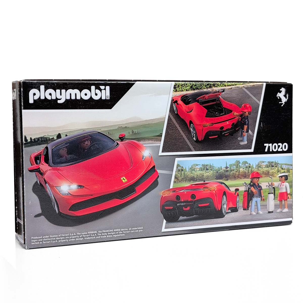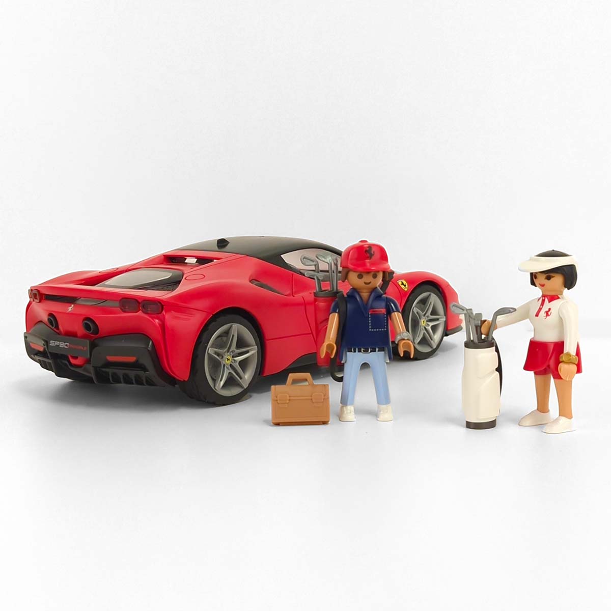 De set bevat een Ferrari SF90 Stradale met verlichting van PLAYMOBIL, twee PLAYMOBIL-figuren, twee golftassen, een koffer en andere leuke extra’s. Een prachtige replica van de in Italiaanse serie geproduceerde superwagen, ideaal voor alle autoliefhebbers om tentoon te stellen, te bewonderen of mee te spelen.