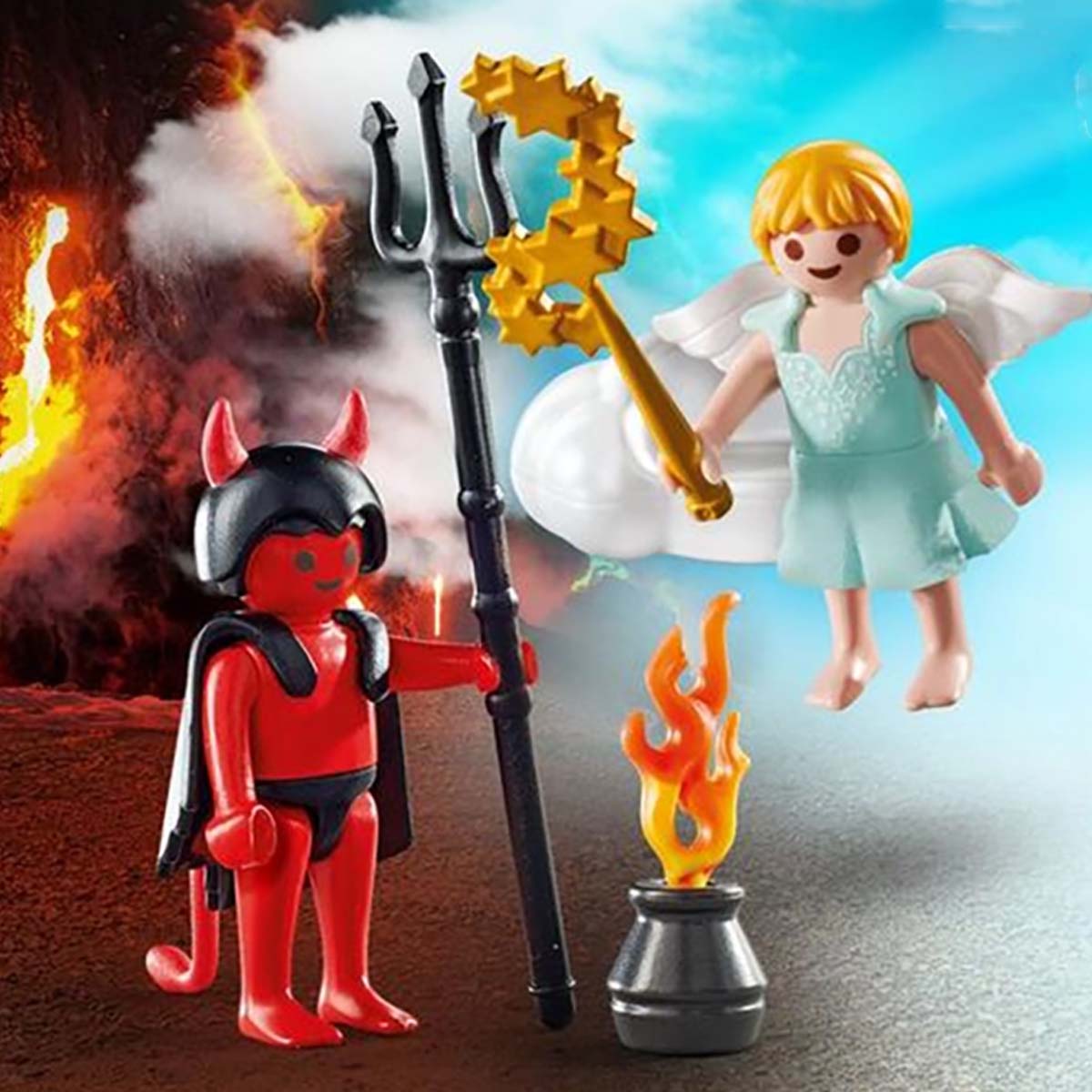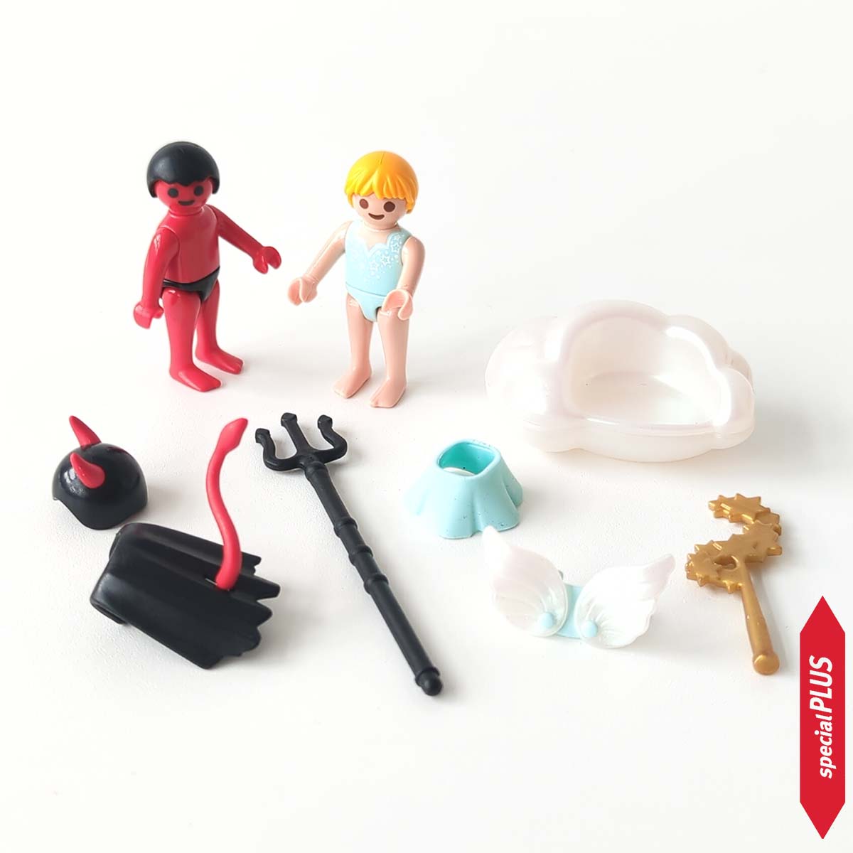 In dit Playmobil 5411 Special Plus setje vind je een lief engeltje met een wolkje en toverstafje en een slecht duiveltje compleet met rode hoorns, vuurpot en een drietand. Ideaal setje voor rollenspellen. Vuurtje vergat ik op de foto te zetten, zit wel in de set.