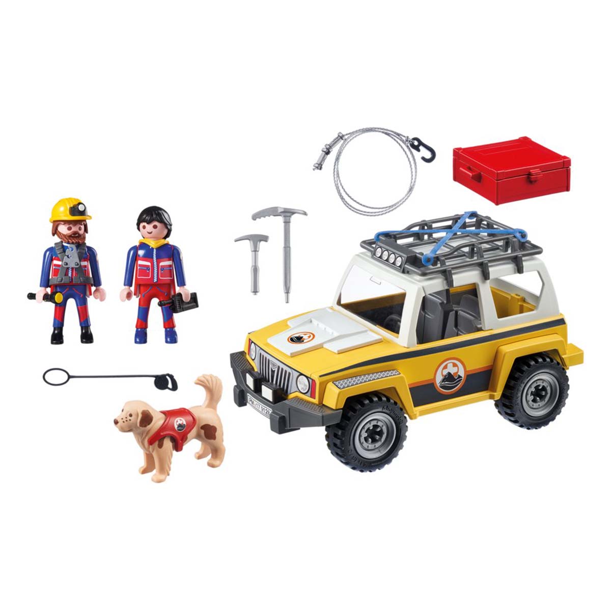 De Playmobil 9128 Mountain Rescue Truck brengt avontuur naar elke berghelling. Een stoere 4×4 sleept een afneembare dakbox gevuld met reddingsmateriaal, compleet met een siliconen bandje dat alles op z’n plek houdt. Twee redders vinden moeiteloos plaats in de cabine en een reddingshond springt trouw mee. Bij een noodgeval worden figuur en uitrusting aan het klimtouw bevestigd en laat de hulpverlener zich beheerst uit de wagen zakken – een spannend moment voor kinderen vanaf 4 jaar. Op glad paden, ruige terreinen of in de woonkamer: deze playset nodigt uit tot creatieve scenario’s en echte reddingsactie