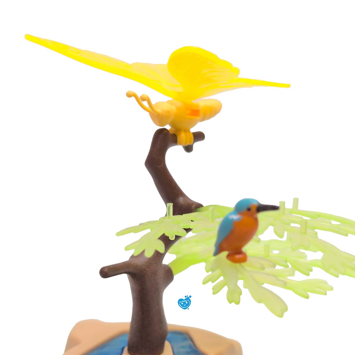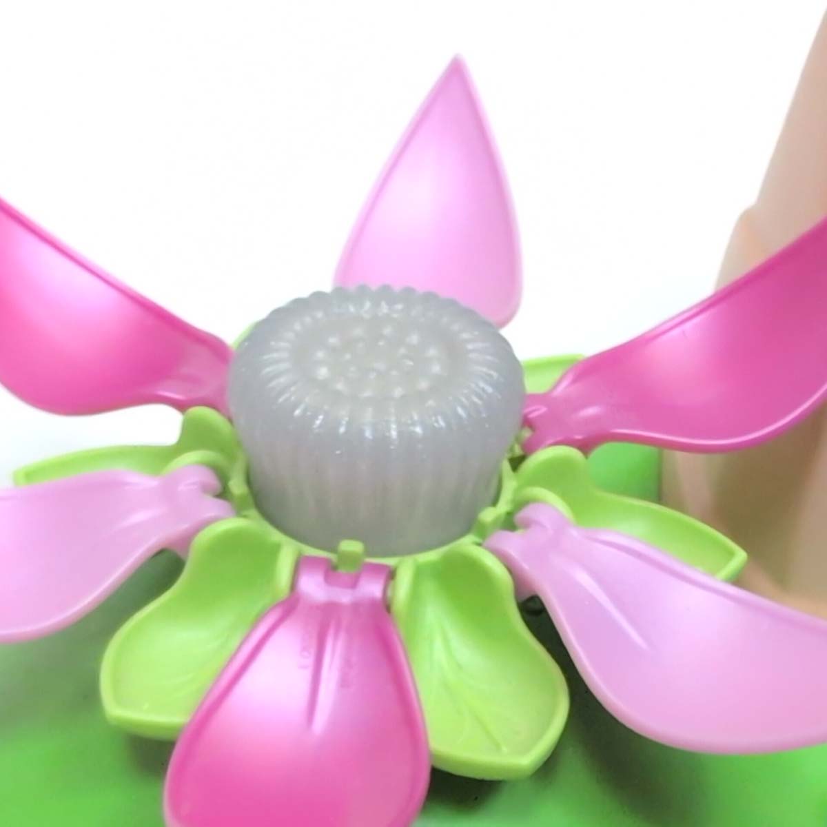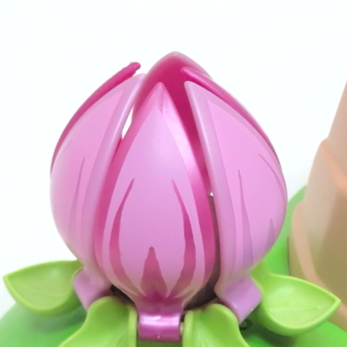 Betoverde weide met super schattig feeënbabies. Kijk die mooie de waterval! De bloembladeren kunnen apart geopend worden en zo verschijnt de feeënbaby op de glinsterende bloemstempel met wisselend gekleurd licht. De lichtmodule met een LED die van kleur verandert (benodigde batterijen zijn inbegrepen), bevindt zich onder de transparant glinsterende bloemstempel, zodat deze van onderaf met een spel van kleurenwisselingen wordt verlicht. Op de bodemplaat aan de voet van de bloem bevindt zich de knop waarmee het lichtspel wordt ingeschakeld. Het licht kan uitgeschakeld worden door de knop nogmaals in te drukken.