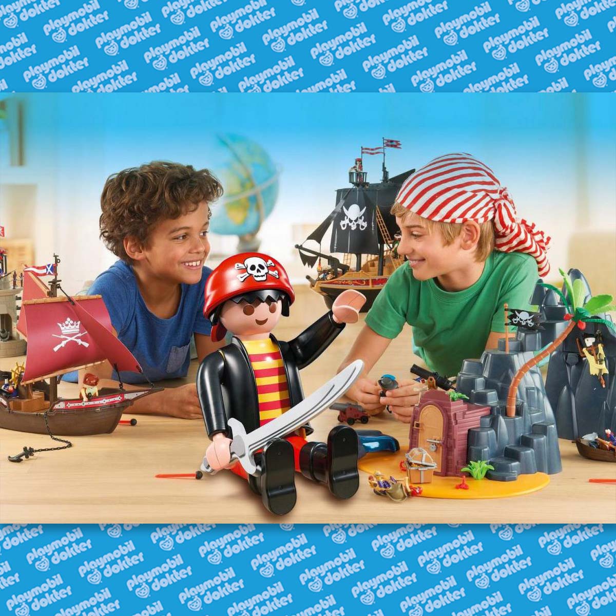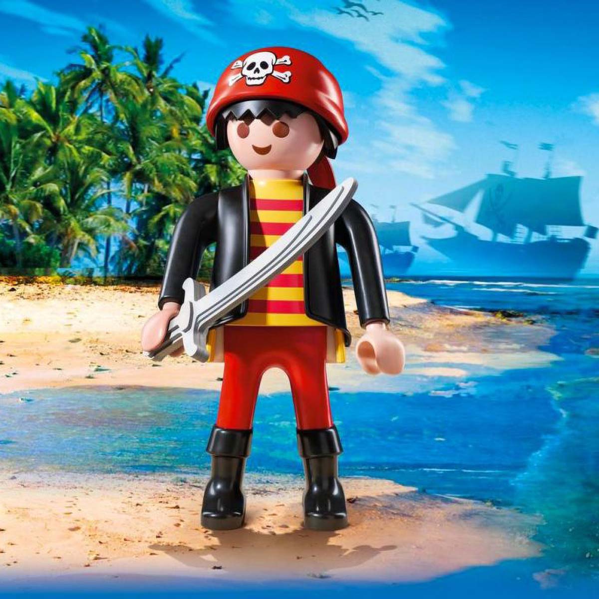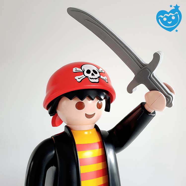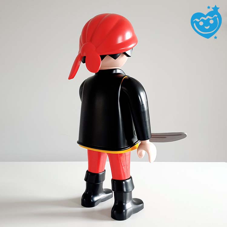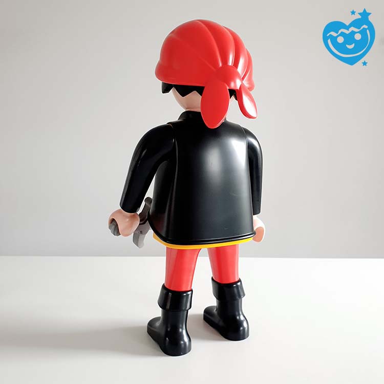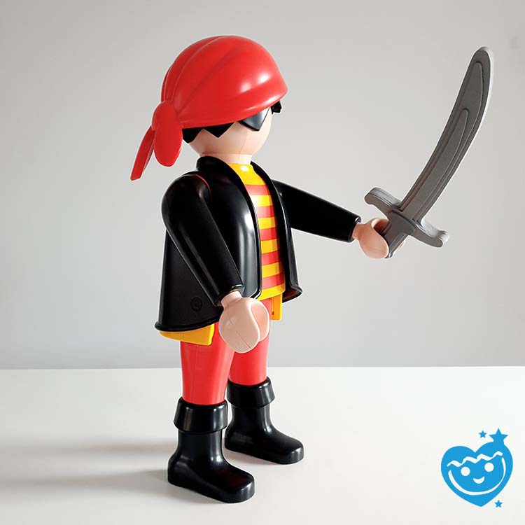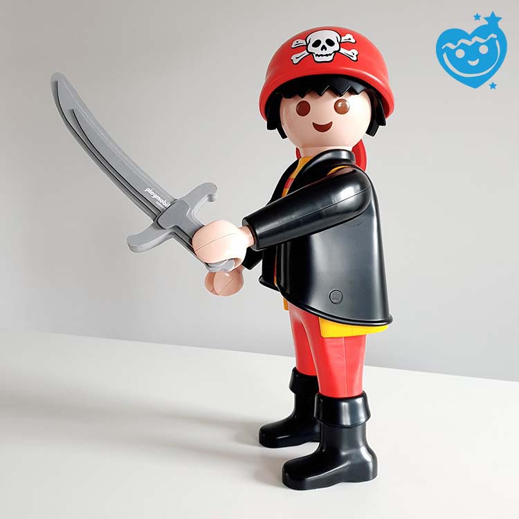 De XXL Piraat van PLAYMOBIL van 63 cm hoog is net zo beweeglijk als zijn kleine kameraden van de piratenwereld van PLAYMOBIL. Natuurlijk heeft hij ook een sabel bij zich en is klaar voor spannende gevechten. De XXL Piraat is ideaal om te decoreren en om binnen en buiten mee te spelen.