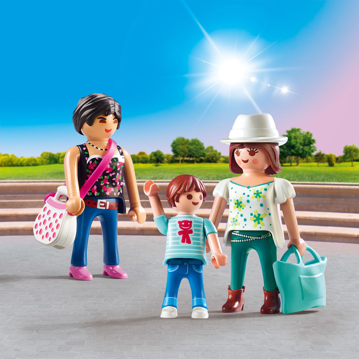 De Meisjes kijken er al dagen naar uit om samen te gaan winkelen. Lekker op het gemak door de winkels slenteren en alle mooie spullen bekijken, dat wordt heel gezellig. Alleen nog snel de draagtas pakken en dan kunnen ze gaan! Inclusief 3 Playmobil speelfiguren.
