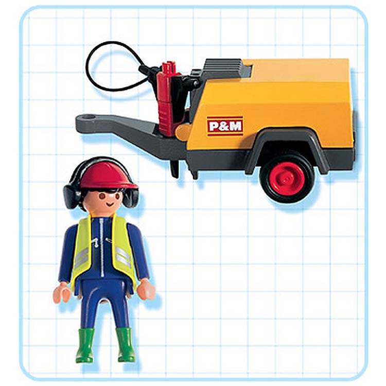 Playmobil speelset met drilboor, aanhanger en bouwvakker. Bedek je oren, de drilboor maakt veel lawaai! Het aanhangertje kan achter praktisch elke Playmobil auto geplaatst worden.