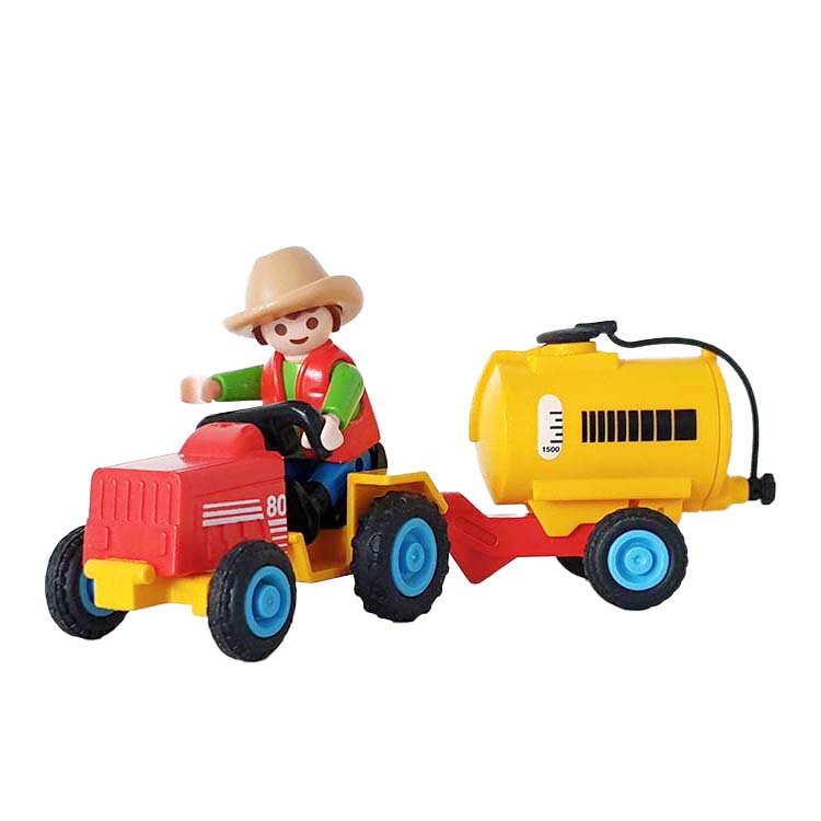 Dit Playmobil jongetje is helemaal blij met zijn tractor. Inclusief aanhanger met watertank welke gevuld kan worden met water en kan kiepen.