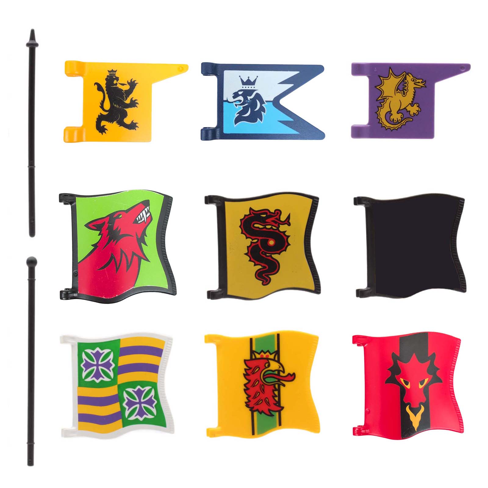 Creëer je eigen epische avonturen met deze fantastische Playmobil vlaggen! Kies uit diverse iconische symbolen zoals leeuwen, draken, wolven en meer. Personaliseer je kastelen, schepen en legers en laat je fantasie de vrije loop. Ideaal voor urenlang speelplezier en het bouwen van jouw unieke ridderwereld!