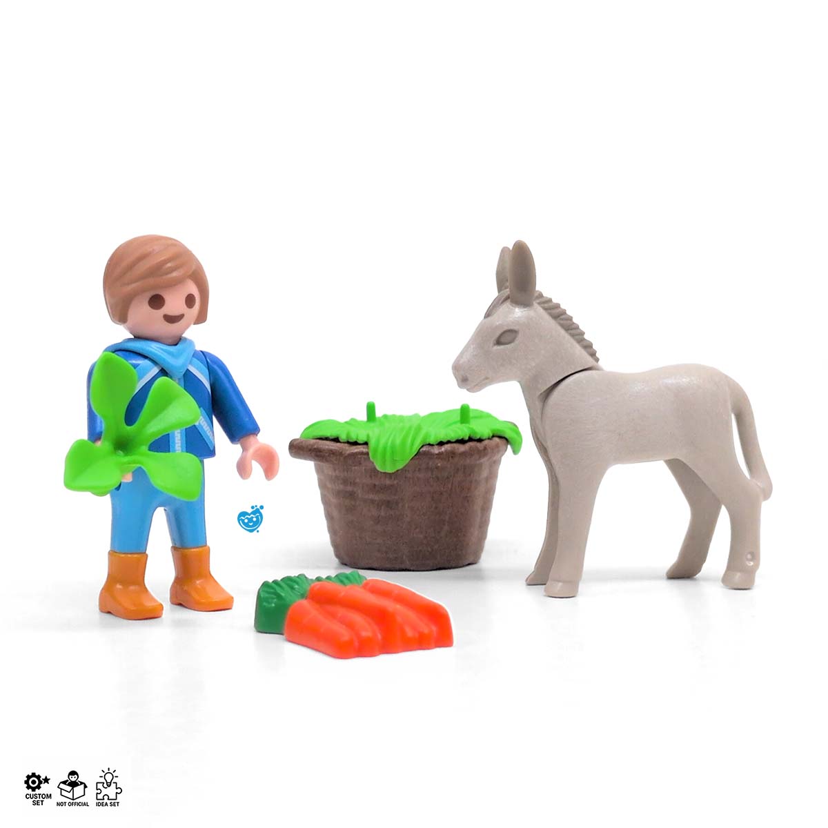 Een schattig ezelveulen en zijn jonge verzorger: samen vormen ze een hartverwarmend duo. Het kind zorgt met liefde voor het kleine dier – klaar voor knuffels, wortels en wandelingen. Ideaal voor elke boerderijscene of gewoon als extra dosis schattigheid in je Playmobil-wereld!