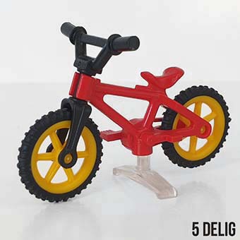 Playmobil kinderfiets, Rood frame met zwarte stuurvork en dikke profielbanden, inclusief transparante fietsstandaard (5-delig).